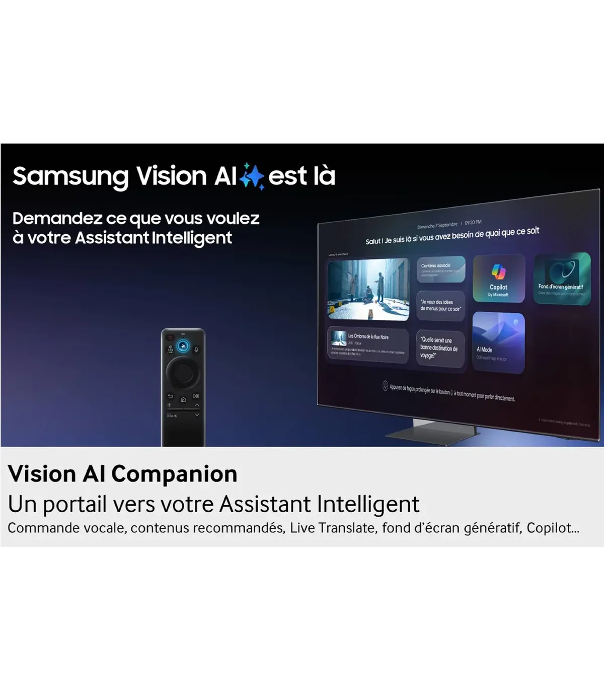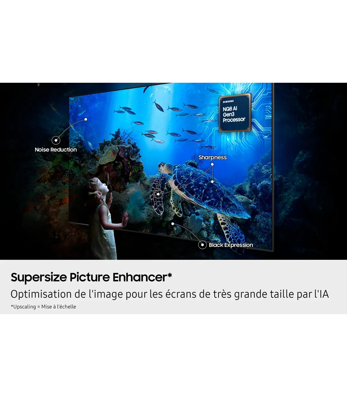 Découvrez le Samsung TQ100QN80F, un téléviseur Neo QLED de 100 pouces (252 cm) qui transforme votre salon en véritable salle de cinéma. Grâce à sa résolution 4K UHD et à la technologie Neo QLED dotée de rétroéclairage Mini LED, ce TV grand écran Samsung offre une qualité d'image exceptionnelle avec des noirs profonds, des couleurs éclatantes et un contraste saisissant. La compatibilité HDR10+ / HLG garantit des détails sublimés dans chaque scène, tandis que le taux de rafraîchissement de 120 Hz associé au processeur NQ4 AI Gen3 assure une fluidité remarquable, idéale pour le gaming et les contenus sportifs. Équipé du système Tizen Smart TV, il donne accès à toutes vos applications de streaming préférées. Côté connectivité, profitez de ports HDMI 2.1, du Wi-Fi 5 et du Bluetooth 5.2 pour une intégration parfaite dans votre écosystème multimédia. Son design slim et moderne s'intègre élégamment dans tout intérieur. Un téléviseur haut de gamme pensé pour une expérience home cinéma immersive sans compromis.