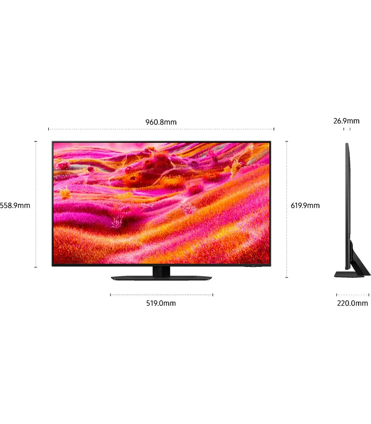Découvrez le Samsung TQ43QN90F, un téléviseur 43" pensé pour le home cinéma. Son design épuré et ultra-fin sublime votre intérieur, tandis que la technologie Neo QLED 4K offre une image éclatante avec des noirs profonds et des contrastes précis. Propulsé par le processeur Neo Quantum 4K, il optimise chaque scène pour un rendu fluide et détaillé. Profitez d’un son immersif grâce au son adaptatif et au Q-Symphony compatible avec les barres de son Samsung. Côté Smart TV, l’interface Tizen garantit une navigation rapide avec vos applications préférées. La dalle 43" (108 cm) affiche une résolution 4K UHD (3840 x 2160). Connectivité complète avec HDMI, USB, Sortie audio optique, Ethernet (LAN), Wi‑Fi et Bluetooth pour relier consoles, lecteurs et systèmes audio en un instant. Bénéficiez d’une expérience premium, idéale pour films, séries, sports et jeux, avec une fluidité et une précision d’image remarquables sur ce Samsung TQ43QN90F Neo QLED 4K.