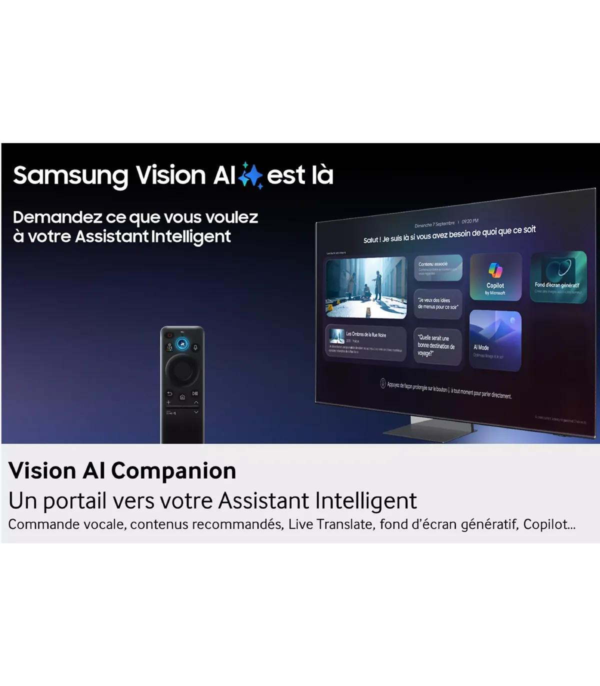 Découvrez le Samsung TQ55Q7F5, un téléviseur 55" pensé pour le home cinéma. Son design épuré aux bords fins sublime votre salon, tandis que la dalle 55" / 138 cm en 4K UHD (3840 x 2160) offre une image éclatante grâce à la technologie QLED. Profitez de couleurs riches, d’un contraste précis et d’une fluidité idéale pour films et sport, soutenus par le processeur Quantum Processor 4K. Le son immersif met en valeur chaque scène pour une expérience plus réaliste. La plateforme Tizen OS assure une navigation fluide et l’accès rapide à vos applications. Côté connectique, bénéficiez de HDMI, USB, sortie audio, port Ethernet, ainsi que du Wi‑Fi et du Bluetooth pour une installation sans contrainte et des connexions simplifiées à vos barres de son, consoles et périphériques. Un téléviseur complet, performant et moderne pour sublimer vos séances cinéma à domicile avec une image précise, un son dynamique et une expérience connectée de haut niveau.