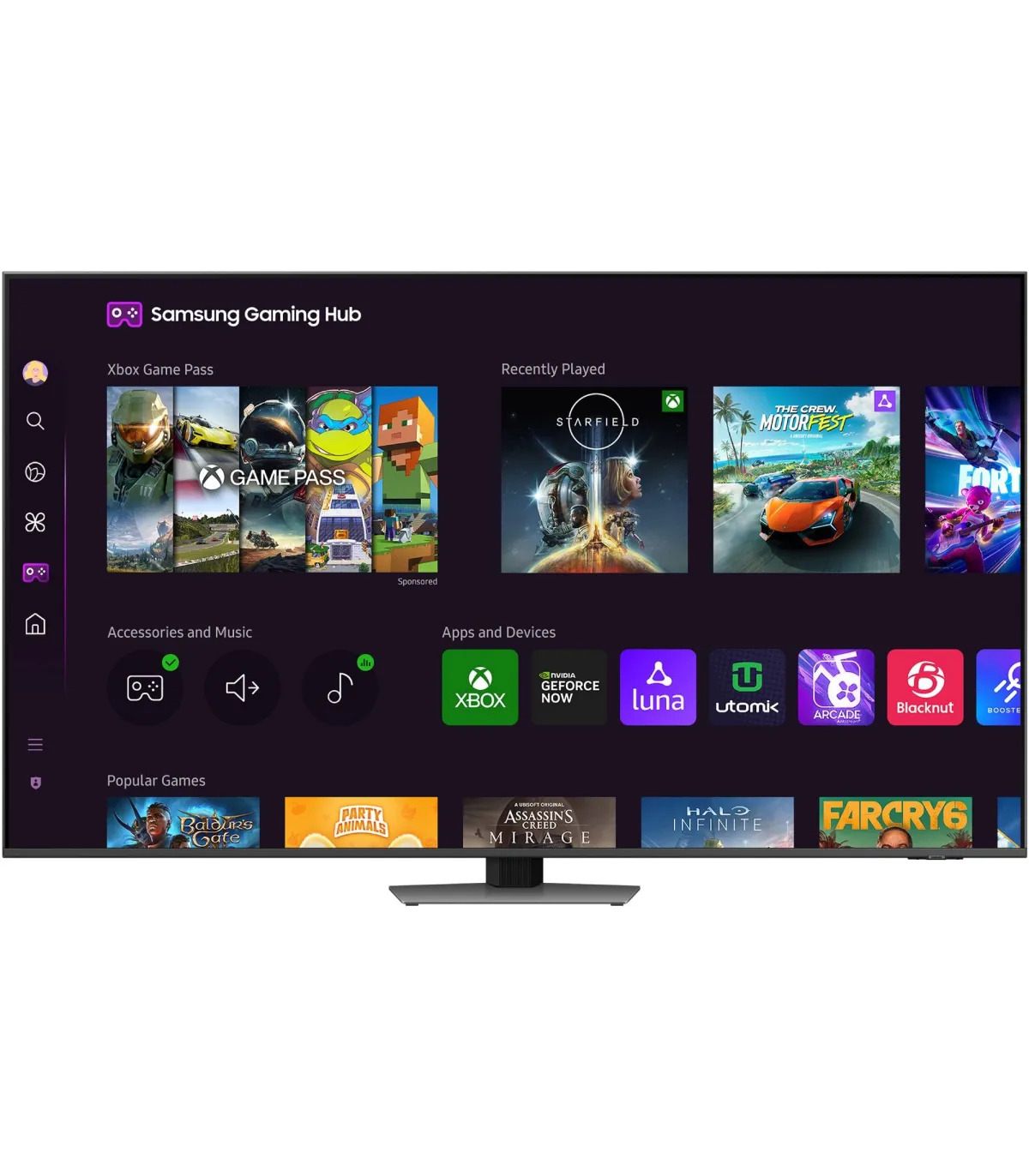 Le téléviseur fonctionne sous Tizen OS 8, le système d’exploitation intuitif de Samsung. L’interface simplifiée permet un accès rapide à vos applications préférées comme Netflix, Disney+, Prime Video ou YouTube. Grâce à la fonction Universal Guide, WebOS vous propose des recommandations personnalisées selon vos goûts et habitudes de visionnage. L’intégration SmartThings permet également de contrôler tous vos objets connectés directement depuis le téléviseur, pour une maison intelligente encore plus pratique.