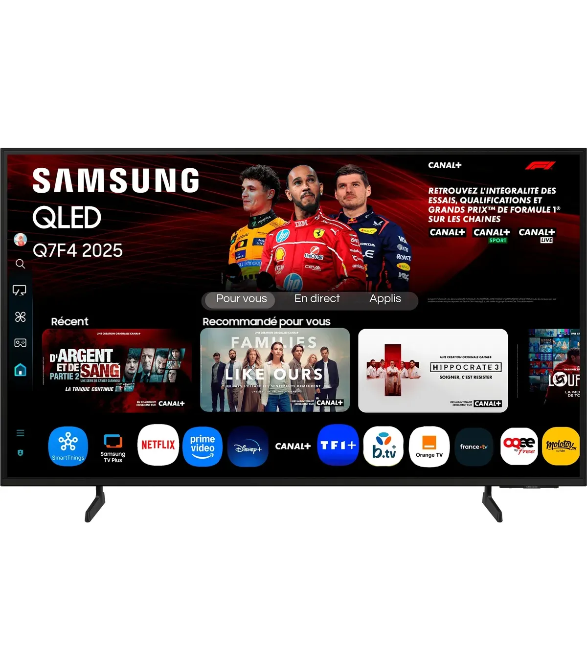 Découvrez le Samsung TQ75Q7F, un téléviseur 75" (189 cm) au design fin et élégant, pensé pour sublimer votre salon home cinéma. Sa dalle 4K UHD (3840 x 2160) QLED délivre des couleurs éclatantes et des contrastes précis pour une image immersive, portée par un processeur puissant optimisant chaque scène. Profitez d’un son ample et précis grâce à des technologies audio avancées, idéal pour films, séries et sport. Le système Smart TV Tizen offre une navigation fluide, un accès rapide aux applications et une expérience connectée intuitive. Côté connectique, bénéficiez de ports HDMI, ports USB, sortie audio et port Ethernet pour tous vos équipements. La connectivité Wi‑Fi et Bluetooth assure un appairage simple avec barres de son, casques et consoles. Optez pour une installation épurée, des performances d’image de haut niveau et une expérience multimédia complète : le choix idéal pour un grand écran QLED 4K taillé pour le spectacle.