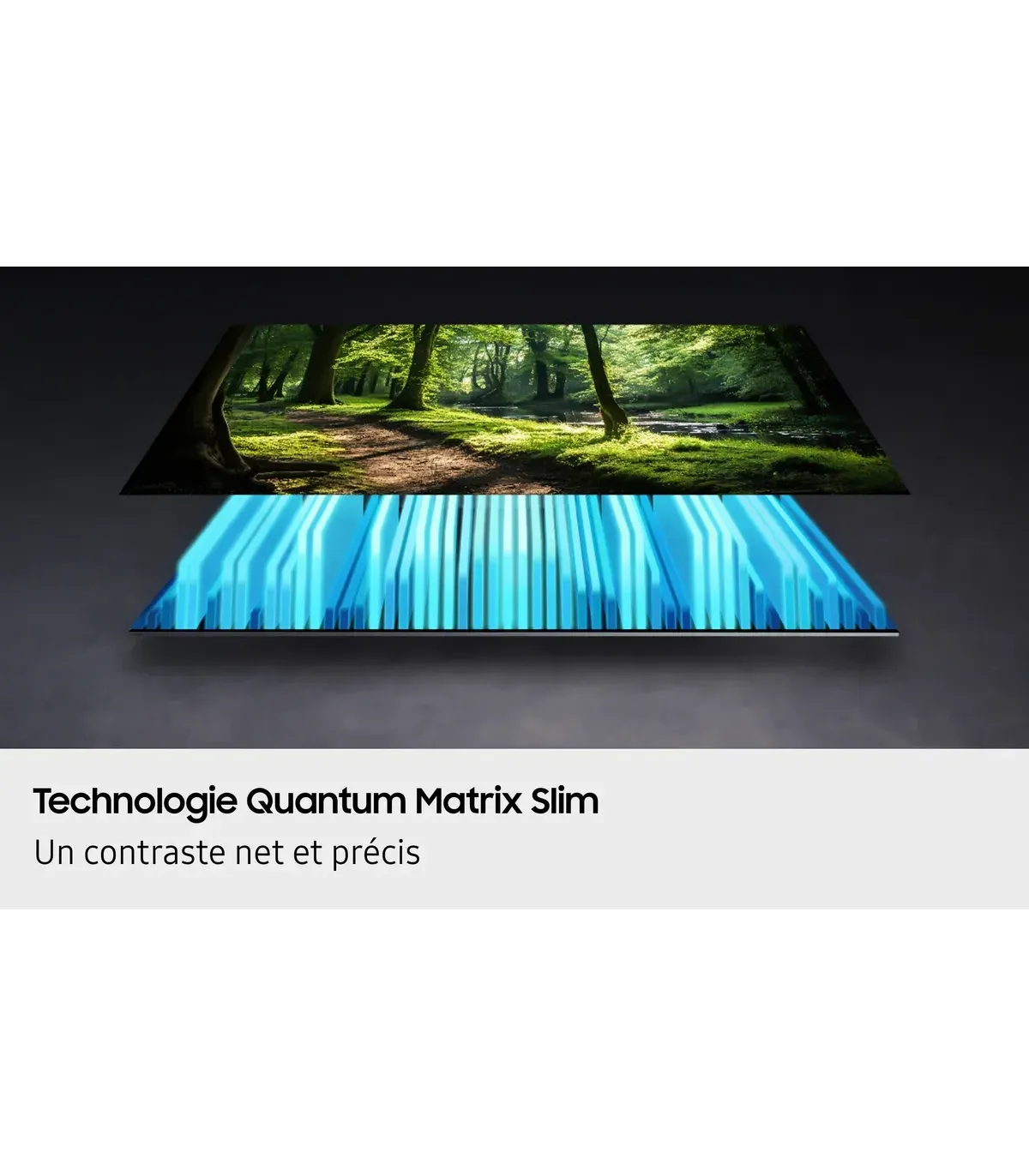 Découvrez le Samsung TQ75QN70F, un téléviseur 75" (189 cm) 4K UHD (3840 x 2160) Neo QLED conçu pour sublimer votre home cinéma. Son design ultra‑fin et ses bords quasi invisibles mettent l’image au premier plan, tandis que le processeur Quantum 4K optimise contraste, netteté et couleurs scène après scène. Profitez d’une image lumineuse et précise avec le Quantum HDR, le Local Dimming et une fluidité parfaite pour le sport et le gaming. Côté audio, immersion garantie grâce au son adaptatif et à la compatibilité Q‑Symphony avec barres de son Samsung. La plateforme Smart TV Tizen OS offrent un accès rapide aux applications de streaming et à l’assistant vocal. Connectivité complète avec 4x HDMI, 2x USB, eARC, optique, Ethernet, CI+, sortie antenne. Connexions sans fil Wi‑Fi 5/6 et Bluetooth 5.2 pour une intégration simple de vos appareils. Un choix premium pour une expérience cinéma à domicile.