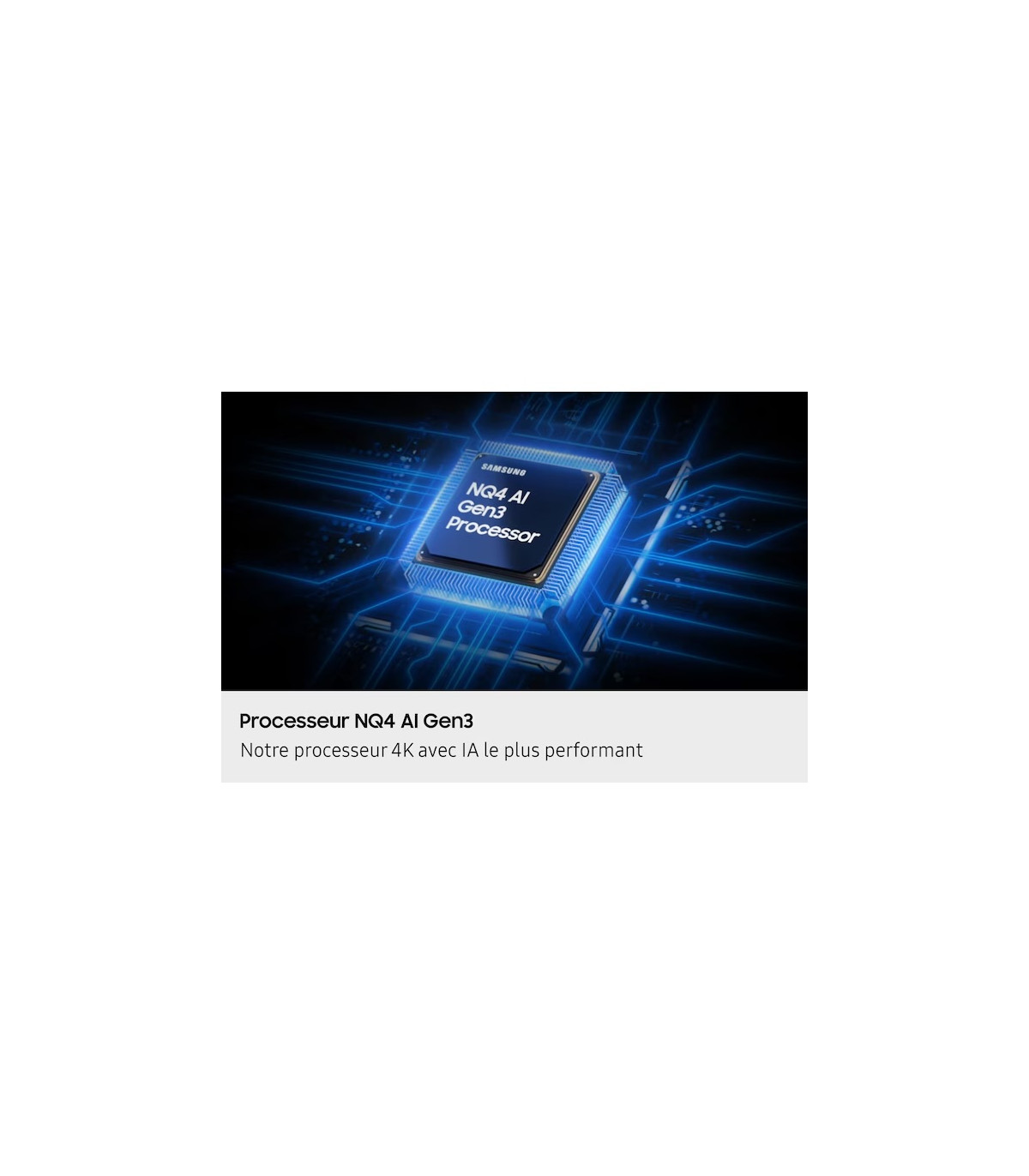 Ce téléviseur est alimenté par le processeur Quantum Processor 4K de Samsung, capable de gérer des tâches exigeantes comme l'amélioration des images à faible résolution pour les afficher en 4K. Le système d'exploitation Tizen OS rend la navigation entre les différentes applications et services fluides et intuitifs.