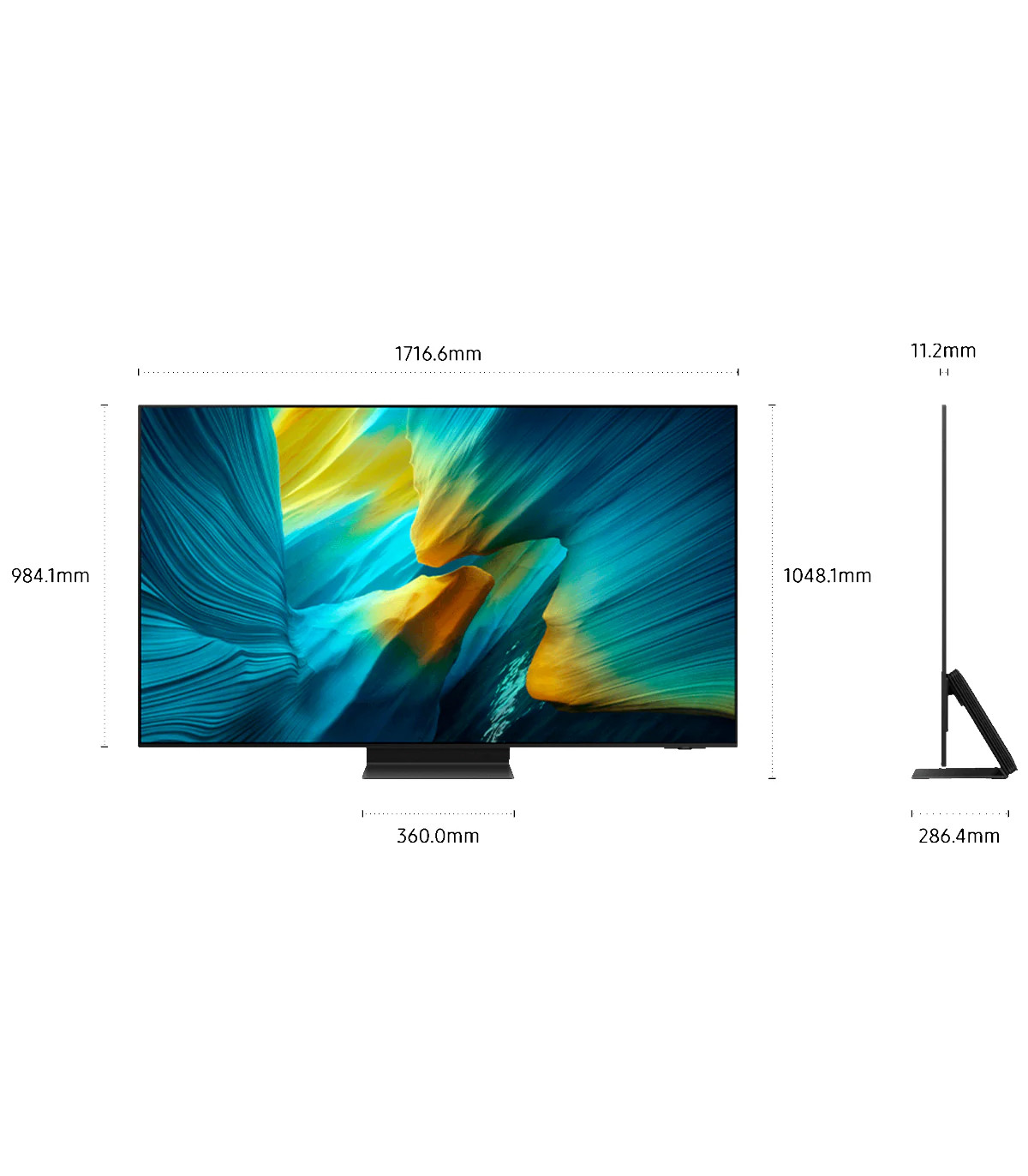 Avec ses lignes épurées et son cadre fin minimaliste, il s'intègre parfaitement dans n'importe quel décor moderne. La taille impressionnante de l'écran de 77 pouces, associée à un pied central discret mais robuste, donne au téléviseur une allure majestueuse tout en assurant sa stabilité.