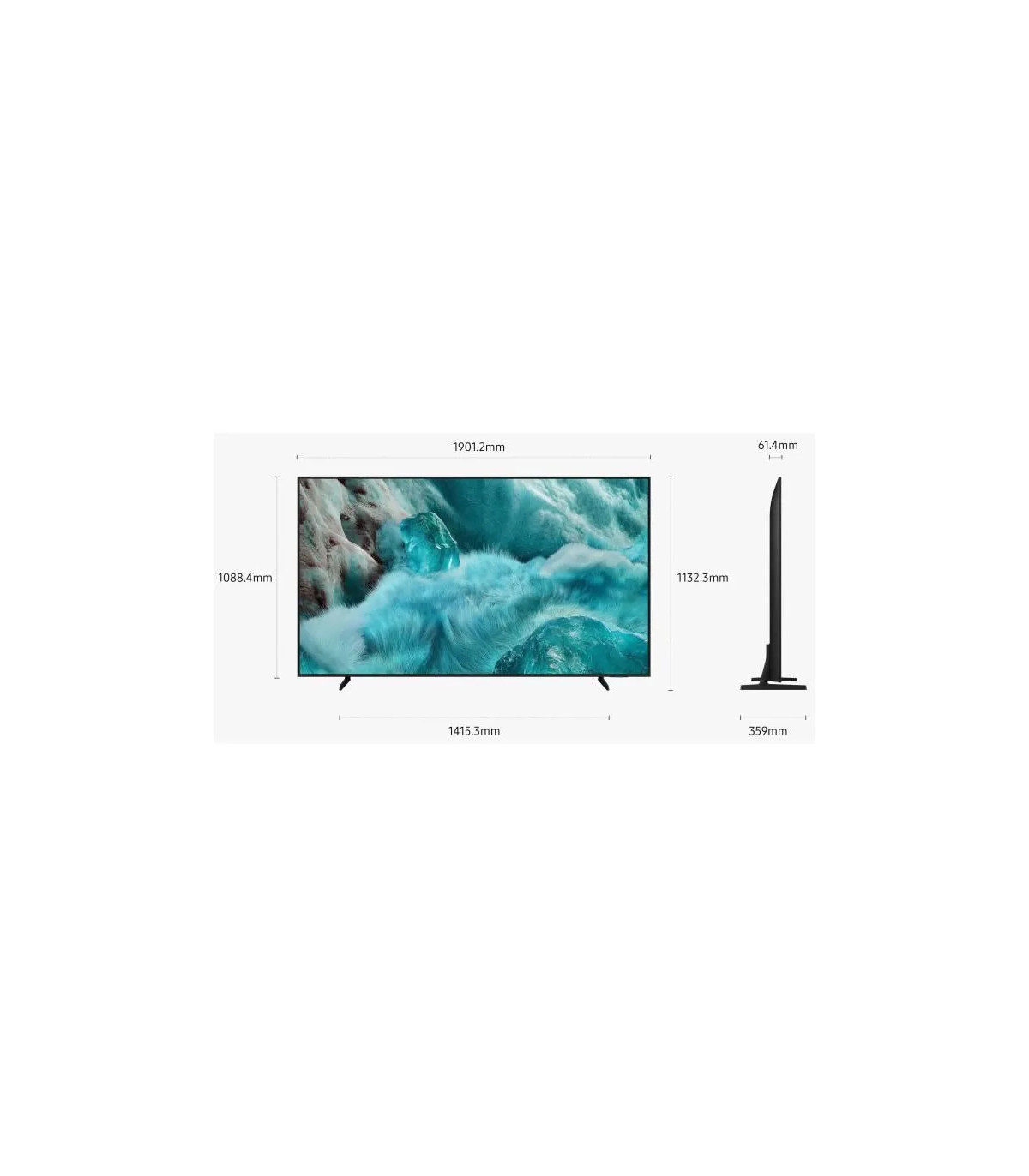 Le premier coup d'œil sur ce téléviseur est suffisant pour comprendre que vous avez affaire à un produit haut de gamme. Avec son cadre ultra-fin et sa finition soignée, le Samsung TQ85Q7F se distingue par son design épuré et moderne. Sa grande taille (85") fait de lui l'épicentre incontestable de votre espace de vie tout en s'intégrant harmonieusement grâce à ses lignes minimalistes.