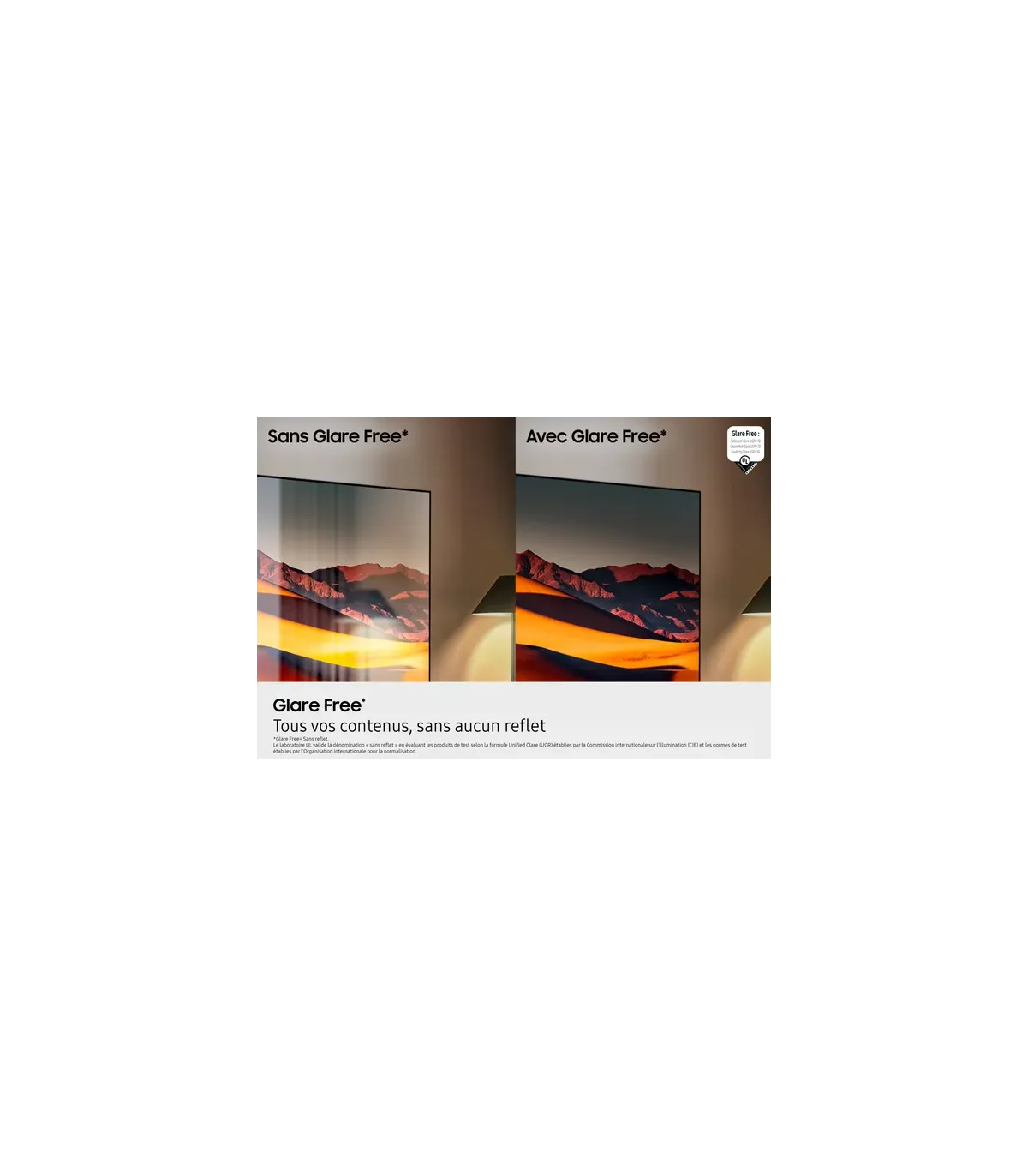 Le système audio 4.2.2 canaux de 80 W intègre la technologie Object Tracking Sound+ (OTS+) et Q-Symphony, synchronisant le son du téléviseur avec votre barre de son compatible Samsung. Chaque mouvement à l’écran est accompagné d’un son tridimensionnel précis, renforçant l’immersion dans les films et séries.