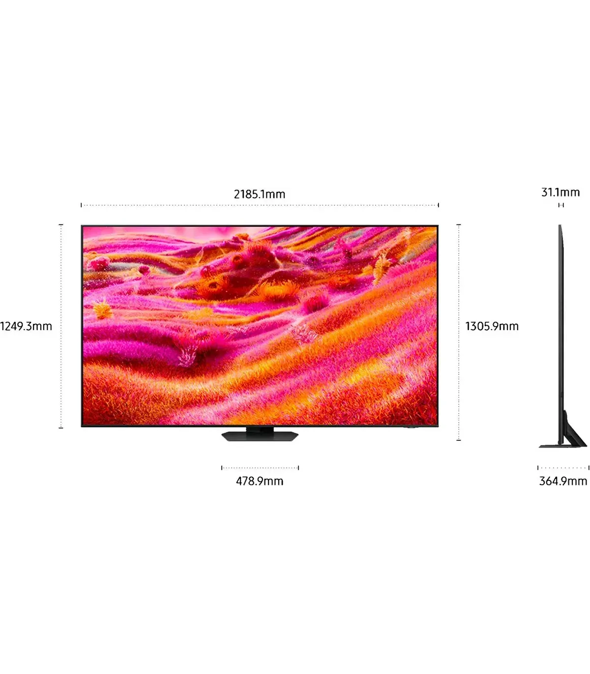 Plongez au cœur du home cinéma avec le Samsung TQ98QN90F : un téléviseur 98" (248,9 cm) au design ultra-fin et bordures minimalistes. Son écran 4K Ultra HD (3840 x 2160) propulsé par la technologie Neo QLED et le HDR offre des contrastes profonds, des noirs précis et des couleurs éclatantes. Le processeur (Neural) Quantum 4K optimise chaque scène avec une mise à l’échelle intelligente. Côté son, profitez d’un audio immersif avec haut-parleurs intégrés, Dolby et suivi d’objets pour une spatialisation réaliste. La Smart TV tourne sous Tizen pour un accès rapide à vos applications et commandes vocales. Connectique complète : HDMI, USB, port Ethernet (LAN), sortie audio numérique (optique), CI+, et compatibilité eARC. Connectivités sans fil : Wi‑Fi et Bluetooth pour associer facilement barres de son, casques et appareils mobiles. Vivez vos films, séries et jeux en grand format, avec une fluidité remarquable et une maîtrise parfaite de la lumière, même en plein jour.