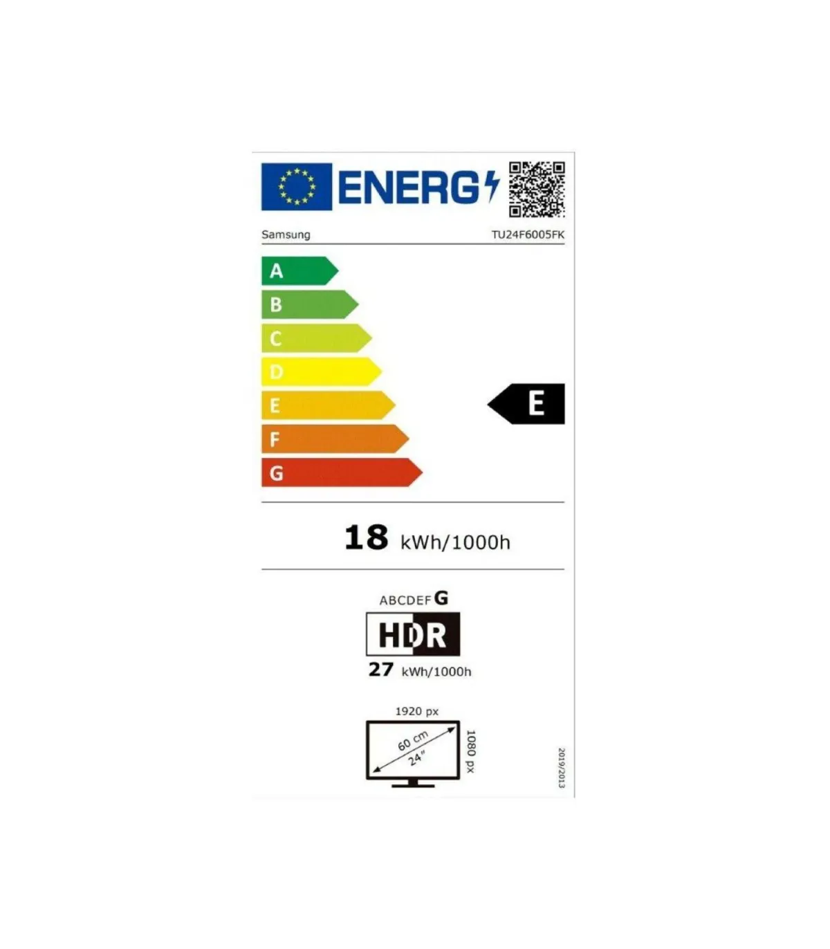 Découvrez le Samsung TU24F6005F, un téléviseur 24" (60,4 cm) au design fin et élégant, parfait pour les espaces compacts. Profitez d’une image Full HD (1920 x 1080) lumineuse et détaillée, optimisée par un processeur performant pour des couleurs précises et des contrastes équilibrés. Le système Smart TV Tizen offre une navigation fluide et l’accès rapide à vos plateformes de streaming préférées. Le son clair et immersif complète l’expérience home cinéma, idéal pour films, séries et sport. Côté connectivité, bénéficiez du Wi‑Fi intégré et du Bluetooth pour connecter facilement barres de son, écouteurs et accessoires. La connectique comprend des ports HDMI, un port USB, une sortie audio, une entrée antenne et un port Ethernet, assurant une compatibilité optimale avec consoles, lecteurs et box TV. Sa dalle LED garantit une consommation maîtrisée et une fiabilité au quotidien. IL combine design, qualité d’image, son et Smart TV Tizen pour une expérience complète, intuitive et performante.