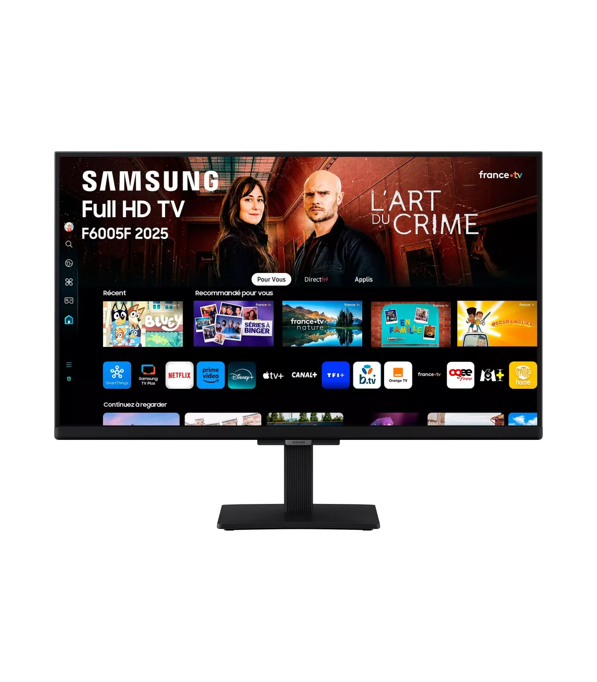 Découvrez le téléviseur Samsung TU24F6005FKXXC 24" Full HD LED, le compagnon idéal pour les petites pièces, la cuisine ou une chambre. Son écran de 24 pouces offre une image nette et lumineuse en Full HD 1080p, sublimée par le traitement PurColor et la technologie HDR pour des contrastes profonds et des détails précis. Profitez d’une navigation fluide grâce au Smart TV Tizen, avec accès rapide à vos applications de streaming préférées. La connectique complète comprend 2x HDMI, 1x USB, Wi‑Fi et Bluetooth, facilitant le branchement de consoles, clés USB ou barres de son. Le mode Game Enhancer réduit l’input lag pour des sessions de jeu plus réactives, tandis que le Dolby Digital Plus assure un son clair et immersif. Son design slim aux bordures fines s’intègre discrètement à tous les intérieurs. Économie d’énergie et fiabilité Samsung au rendez‑vous, pour un téléviseur compact, polyvalent et performant au quotidien.