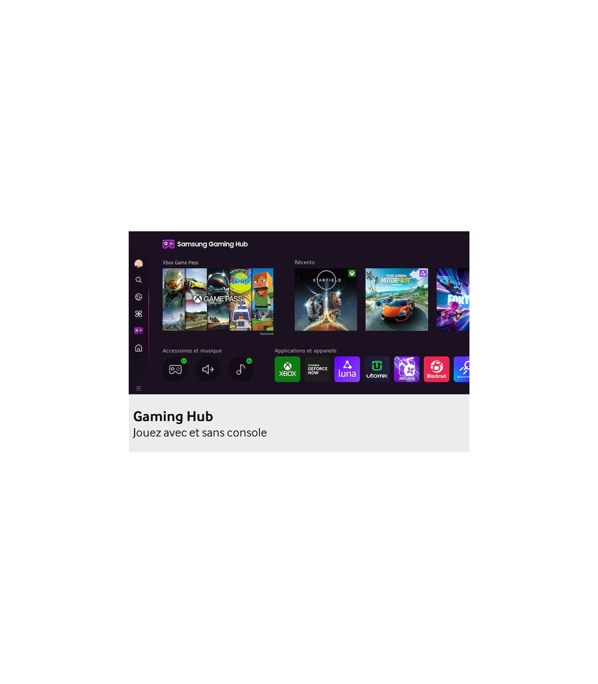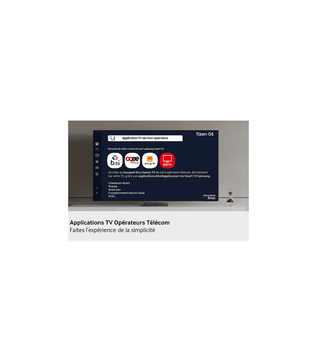 Grâce au système d'exploitation Tizen intégré dans ce téléviseur Samsung, vous avez accès à un vaste choix de contenu en ligne. Vous pouvez facilement naviguer sur Internet, utiliser des applications populaires comme Netflix ou YouTube et même partager du contenu depuis votre smartphone ou tablette directement sur l'écran du téléviseur.
