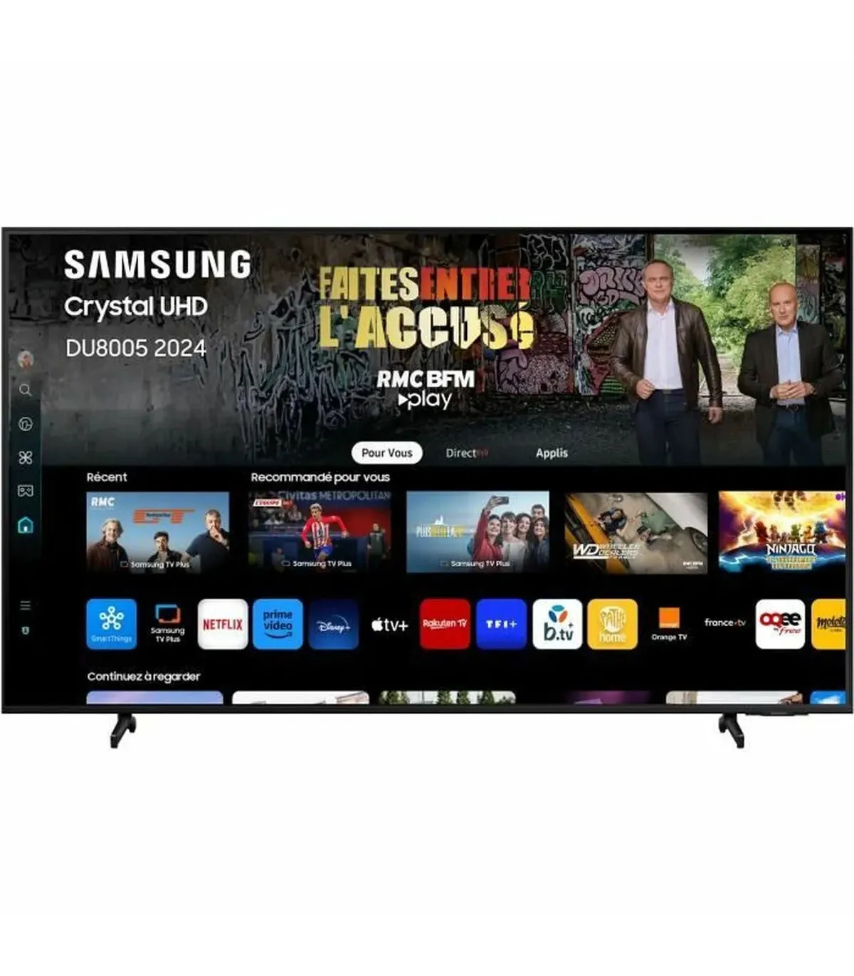 Découvrez des visuels époustouflants avec le Samsung TU43DU8005 43 pouces, offrant une résolution 4K (3840x2160) à couper le souffle et une technologie HDR avancée pour une clarté et des détails inégalés. Ce téléviseur intelligent est alimenté par le Crystal Processor 4K UHD innovant, garantissant des couleurs vives et des images nettes, tandis que son Gaming Hub s'adresse aux joueurs avec une connectivité fluide grâce à 3 ports HDMI et des options sans fil via Wi-Fi. Profitez d'un son immersif avec des fonctionnalités telles que Object Tracking Sound Lite et vivez un mouvement fluide grâce à la technologie de pointe Motion Xcelerator, le tout enveloppé dans un design élégant et mince qui améliore n'importe quel espace de vie.