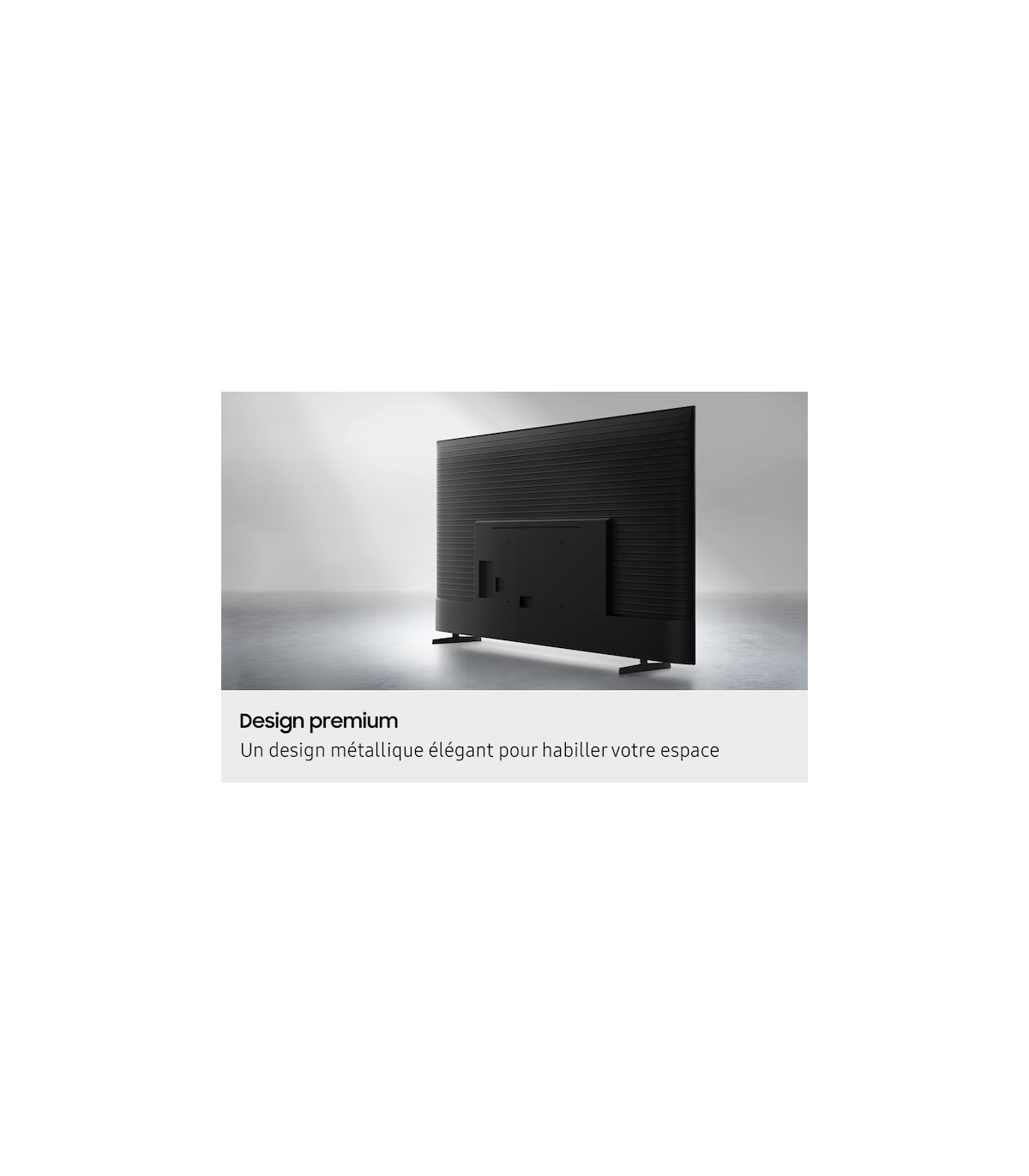 Le design de ce magnifique téléviseur Samsung est une fusion parfaite entre forme et fonction. Son cadre fin maximise la surface de visionnage, tandis que son support minimaliste ajoute une touche d'élégance moderne à votre intérieur. Ce n'est pas juste un simple appareil électronique mais aussi un véritable objet déco dans votre maison.