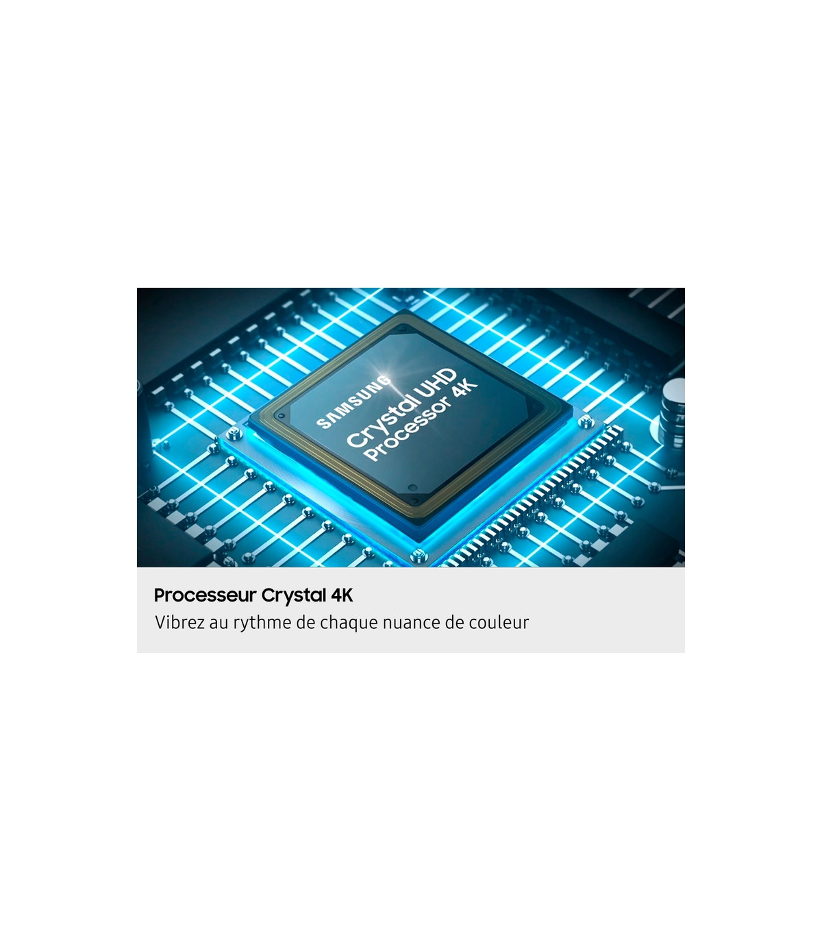 Profitez d'une qualité d'image exceptionnelle grâce à la dalle LED dotée d'une résolution 4K Ultra HD, quatre fois supérieure à celle des TV Full HD traditionnelles. La fréquence de rafraîchissement rapide (Hz) garantit des images fluides même lors des scènes les plus mouvementées. Le processeur Crystal Processor 4K optimise la couleur, ajuste les contrastes élevés et maîtrise le HDR pour produire des images nettes avec des détails précis.