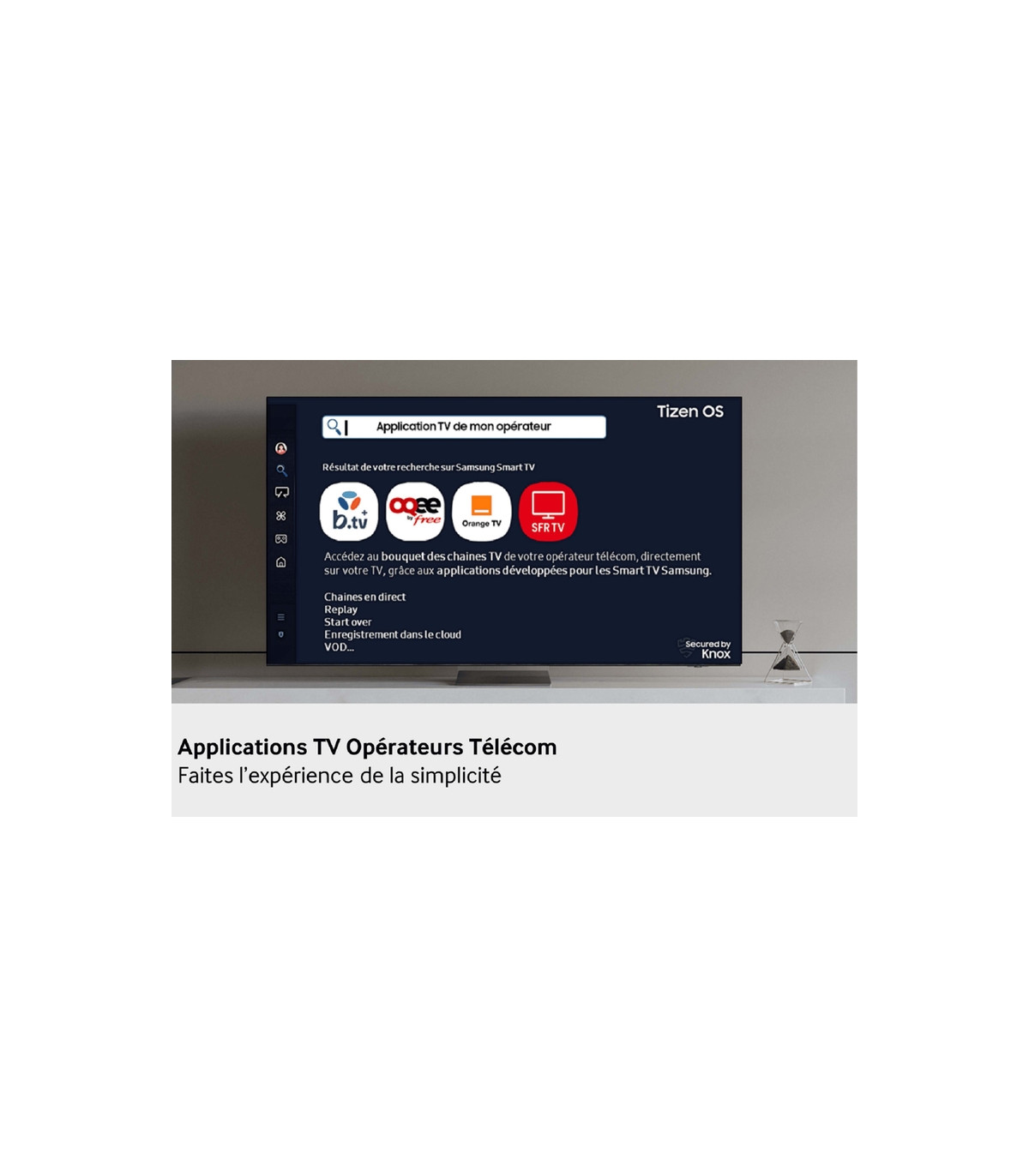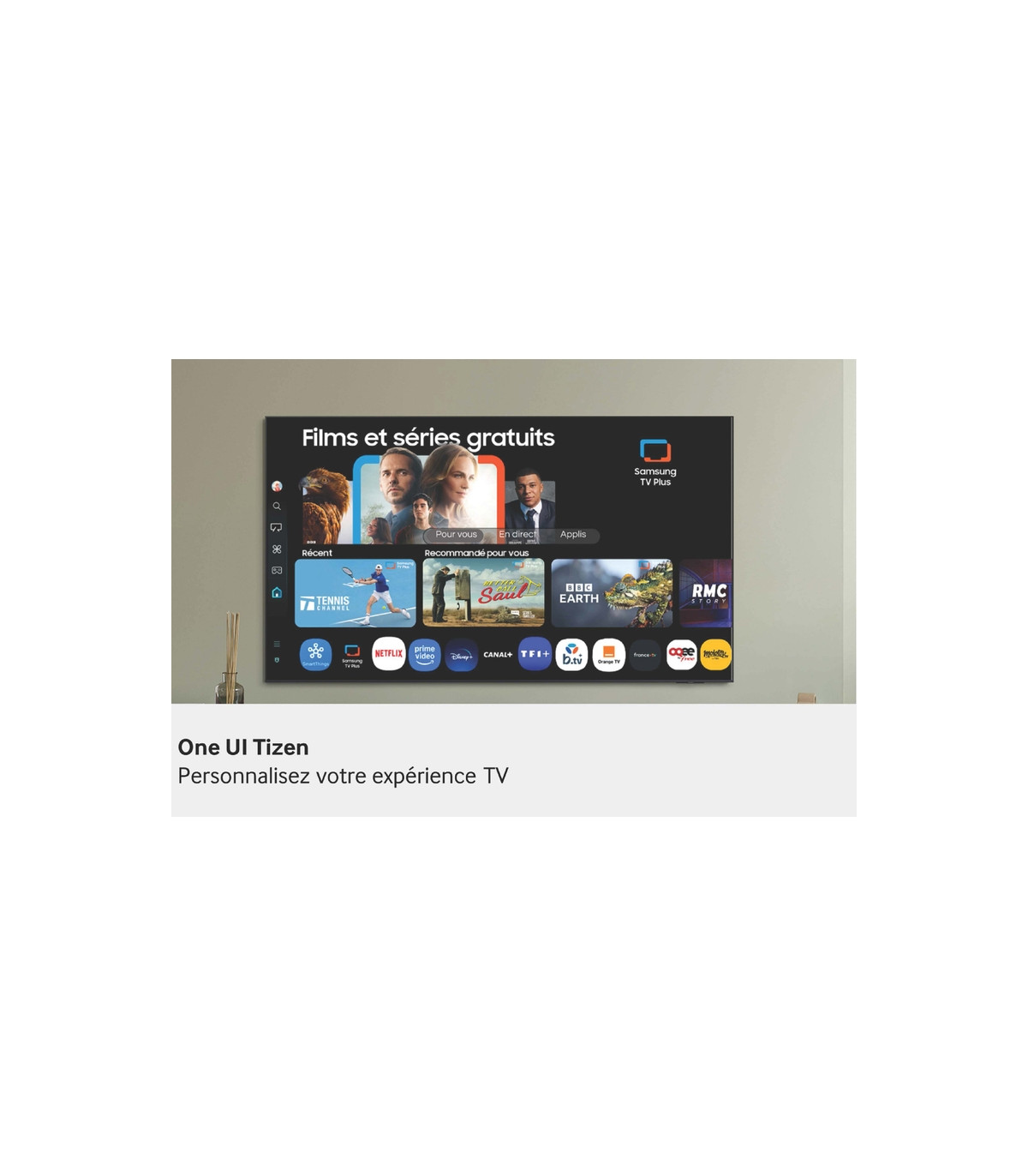 Le Samsung TU55U7025FKXXC fonctionne avec le système d'exploitation Tizen. Simple et intuitif, il offre un accès rapide à vos applications préférées comme Netflix, YouTube ou Amazon Prime Video. Vous pouvez également naviguer facilement sur Internet grâce à son navigateur intégré.