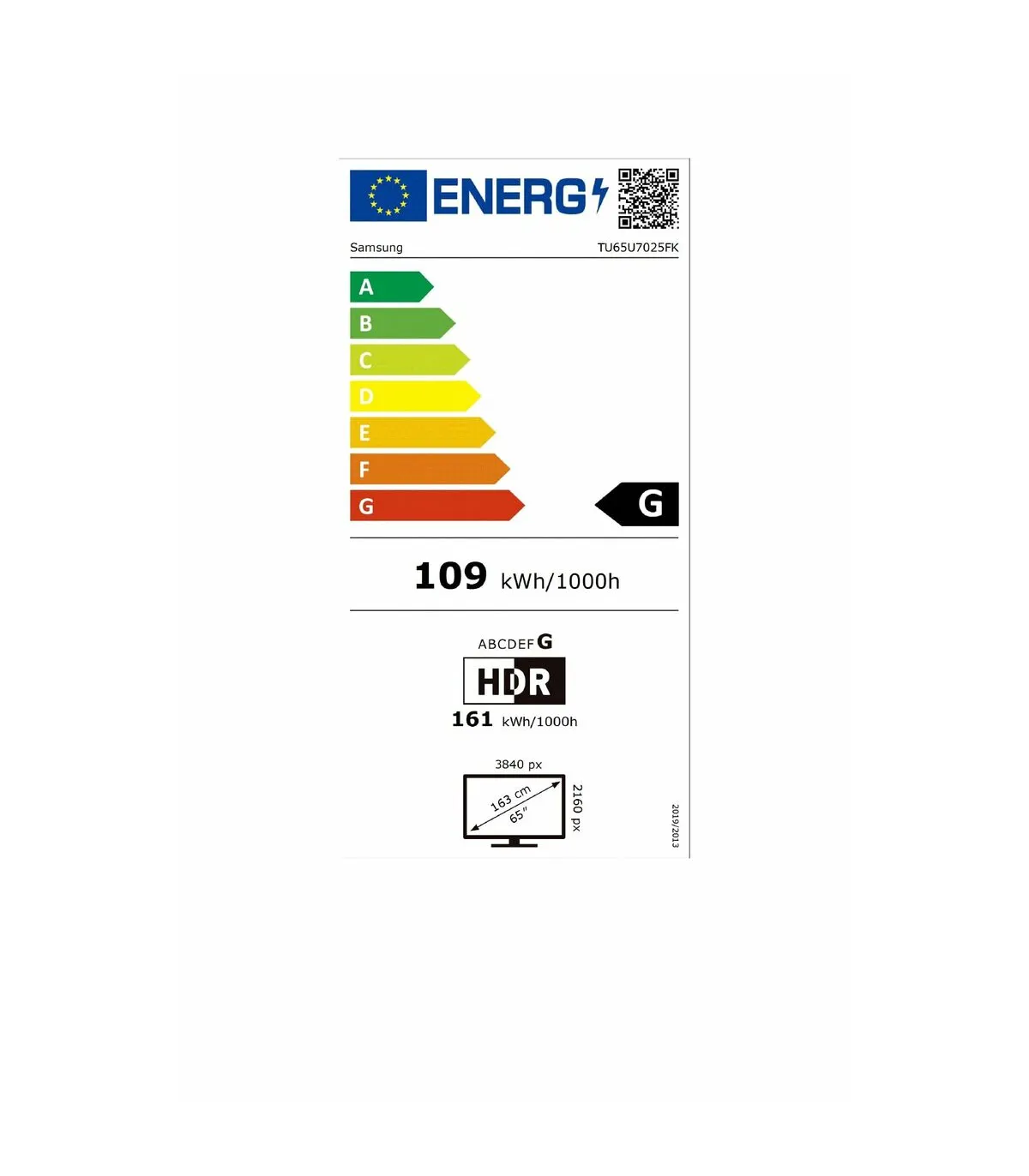 Optimisé pour réduire la consommation en usage standard, le téléviseur affiche une classe énergétique G conforme aux normes en vigueur, avec des modes d’économie d’énergie et un capteur de luminosité pour ajuster l’éclat de l’écran selon l’environnement.