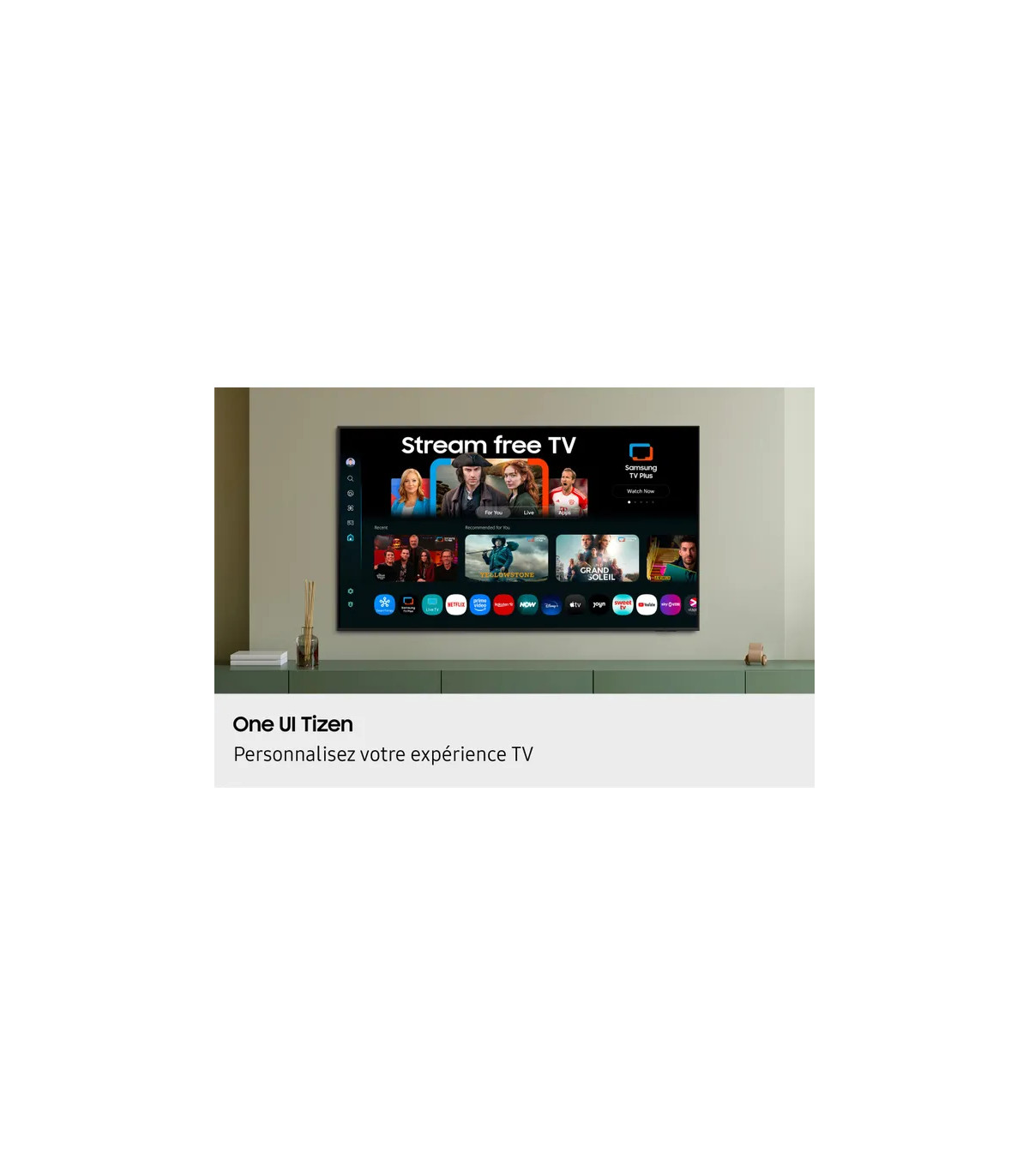 Grâce au système d'exploitation Tizen, ce téléviseur offre un accès facile à une multitude d'applications et services de streaming populaires tels que Netflix, YouTube ou Amazon Prime Video. Vous pouvez ainsi profiter de vos contenus favoris quand bon vous semble.
