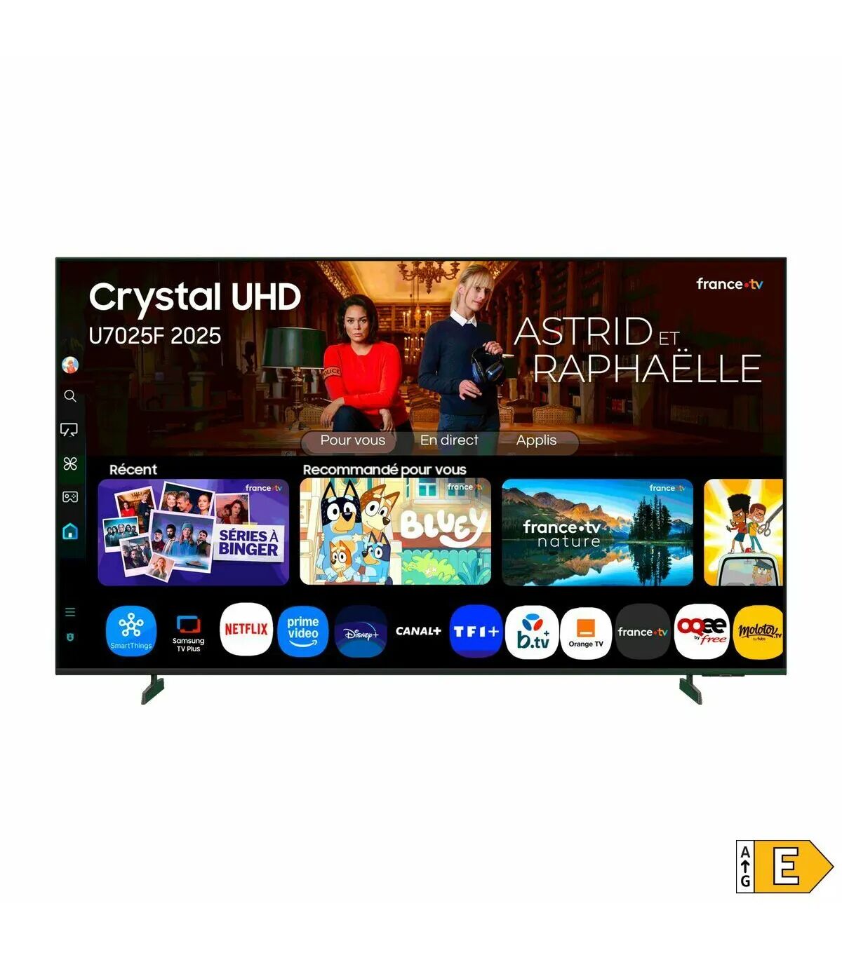 Découvrez le Samsung TU85U7025F, un téléviseur 85" (215 cm) conçu pour sublimer votre salon home cinéma. Son design épuré à bords fins met en valeur une image 4K Crystal UHD (3840 x 2160) d’une netteté remarquable, portée par le processeur Crystal 4K pour un upscaling précis et des couleurs éclatantes. Profitez d’un mouvement fluide et d’un contraste équilibré, idéal pour films, séries et sport. Le son clair et immersif complète l’expérience, avec une restitution optimisée pour les dialogues et les scènes d’action. Côté Smart TV, l’interface Tizen offre un accès rapide à vos applications de streaming et à l’assistant vocal. La connectivité est complète : Wi‑Fi intégré, Bluetooth, HDMI, USB, Ethernet (RJ45), sortie audio optique, pour brancher consoles, barre de son et lecteurs. Avec sa technologie LED Crystal UHD, ses ports multiples et son écosystème connecté, le TU85U7025F est le choix idéal pour une image cinématographique à domicile, simple à installer et prête à performer tous les jours.
