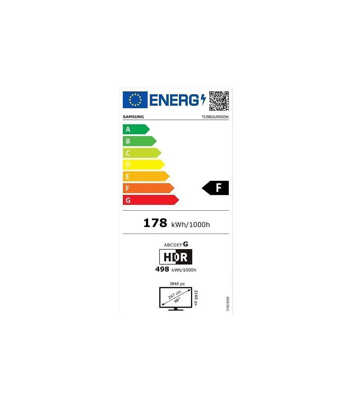 Le Samsung TU98DU9005 est un téléviseur 98″ UHD Crystal complet, alliant grand format, image 4K optimisée, interface Smart TV performante et connectivité étendue. Il s’adresse aux utilisateurs recherchant une immersion totale pour le cinéma, le sport et le gaming, avec un rendu visuel et sonore adapté aux très grands espaces.