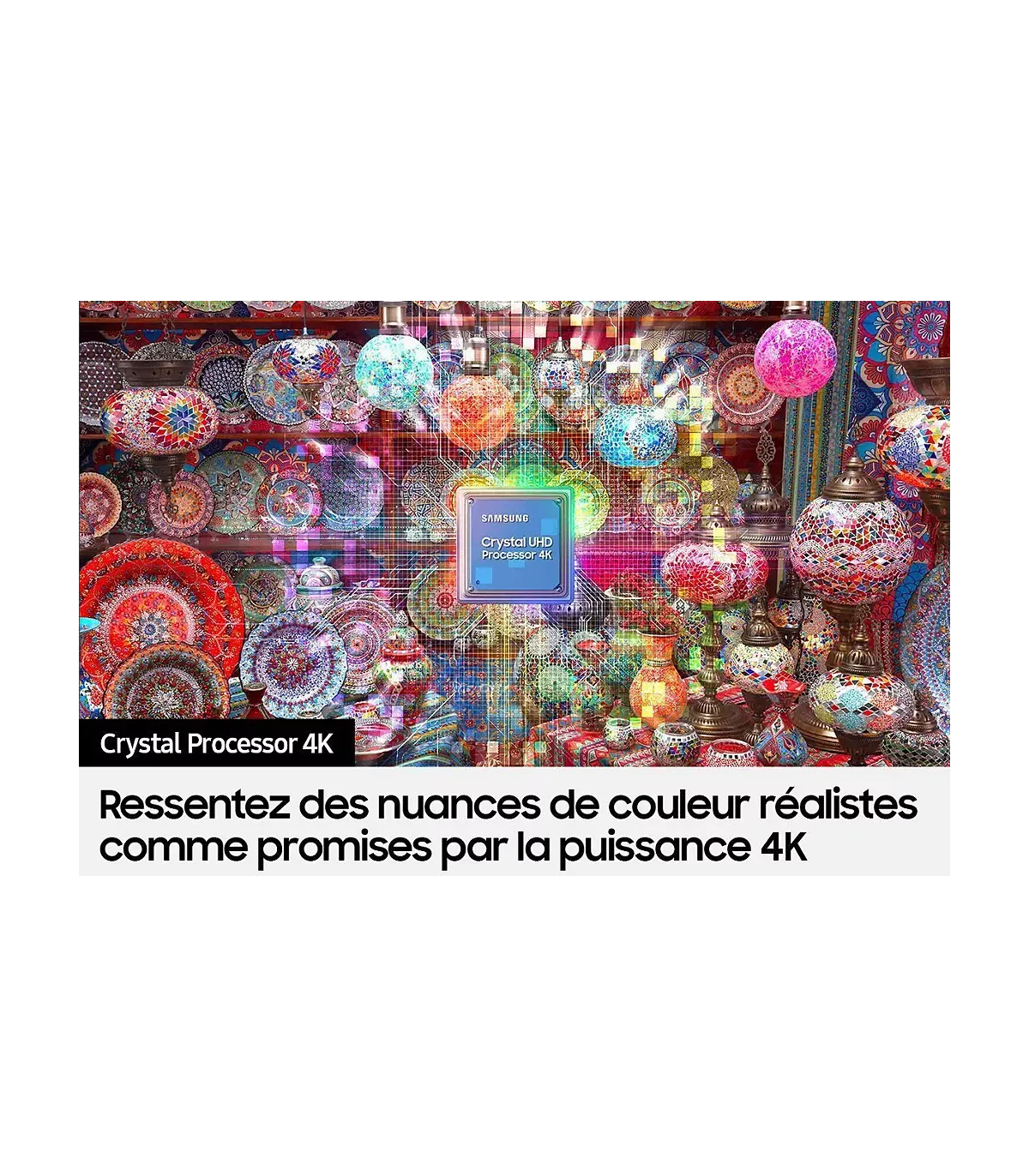 Ce téléviseur embarque une dalle VA de 98″ avec résolution Ultra HD 3840 × 2160 pixels et rétroéclairage LED Edge. Le taux de rafraîchissement varie de 48 Hz à 120 Hz pour une fluidité adaptée aux films, au sport et aux jeux. Il utilise le Crystal Processor 4K pour l’upscaling et l’optimisation de la colorimétrie avec PurColor et Mega Contrast. Les formats HDR HDR10+ et HLG apportent un contraste plus réaliste, bien que le modèle ne dispose pas de Mini‑LED ou QLED avec gradation locale. L’image occupe tout l’espace visuel et chaque détail est rendu avec précision, adaptée à un usage divertissement premium sur grand écran.