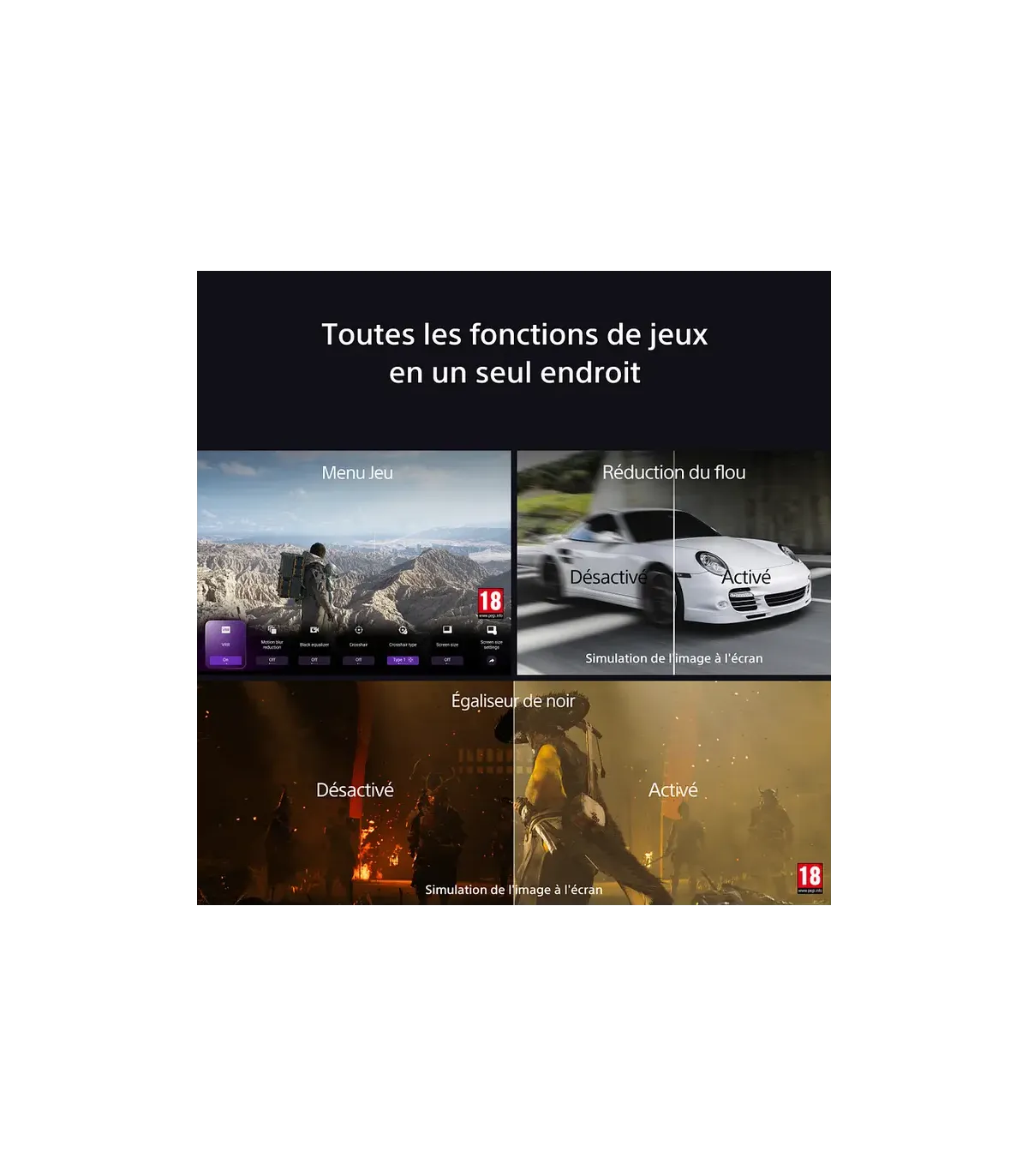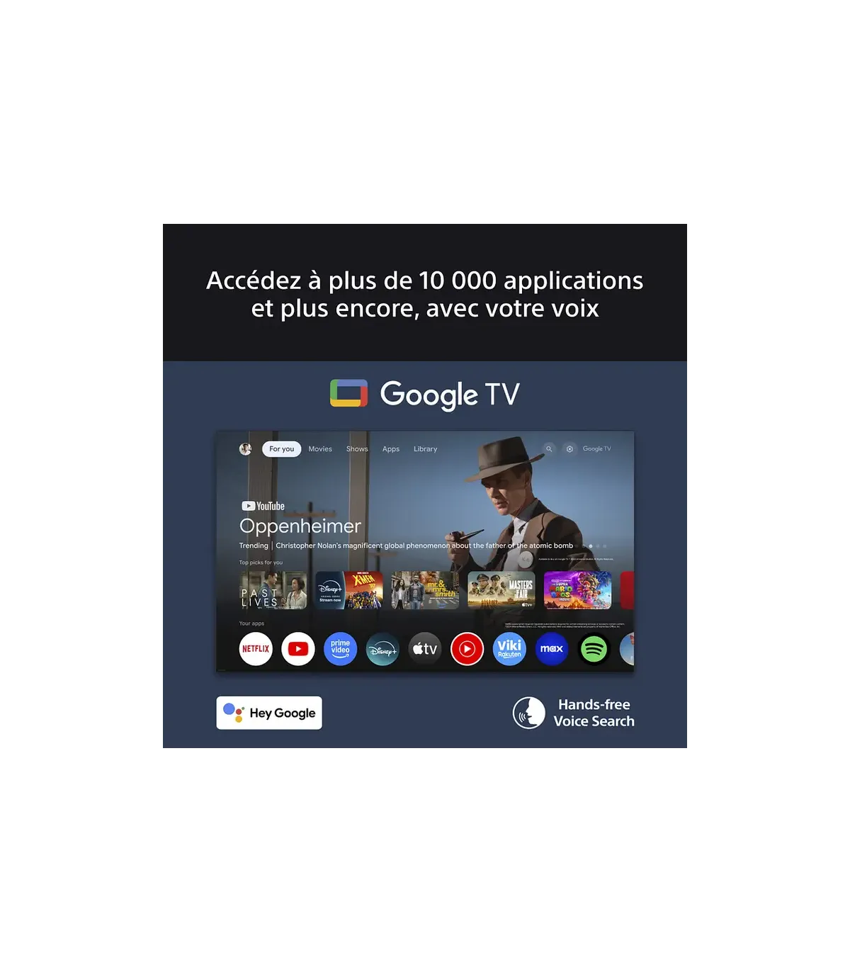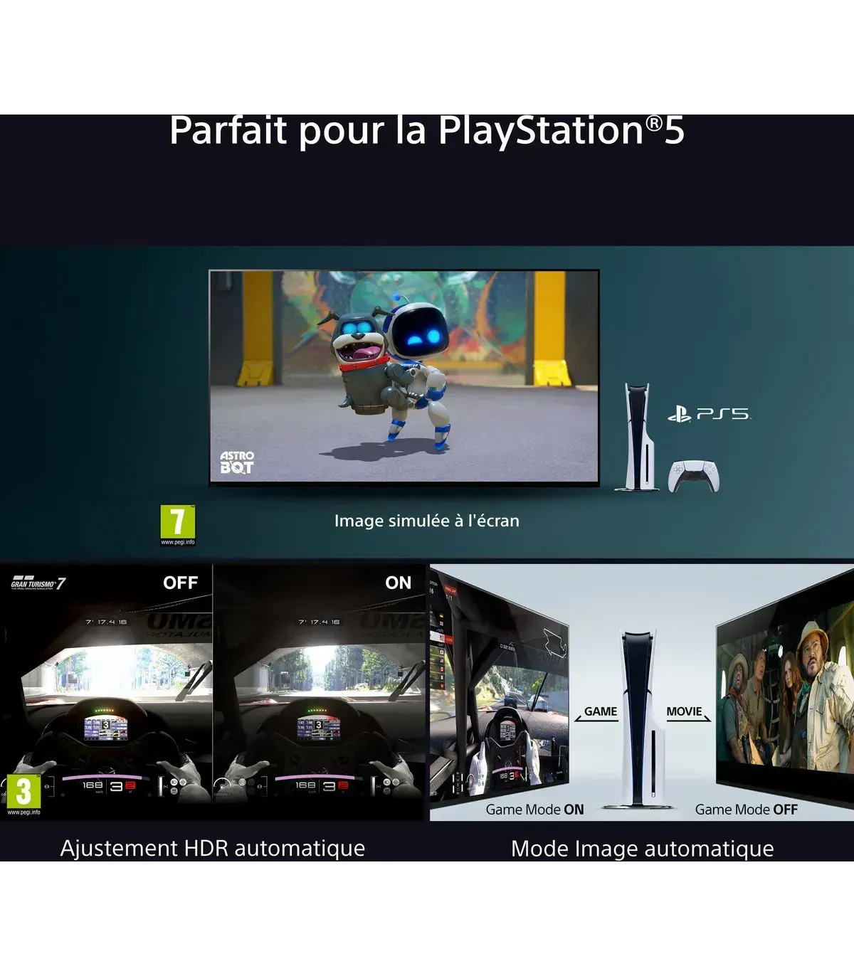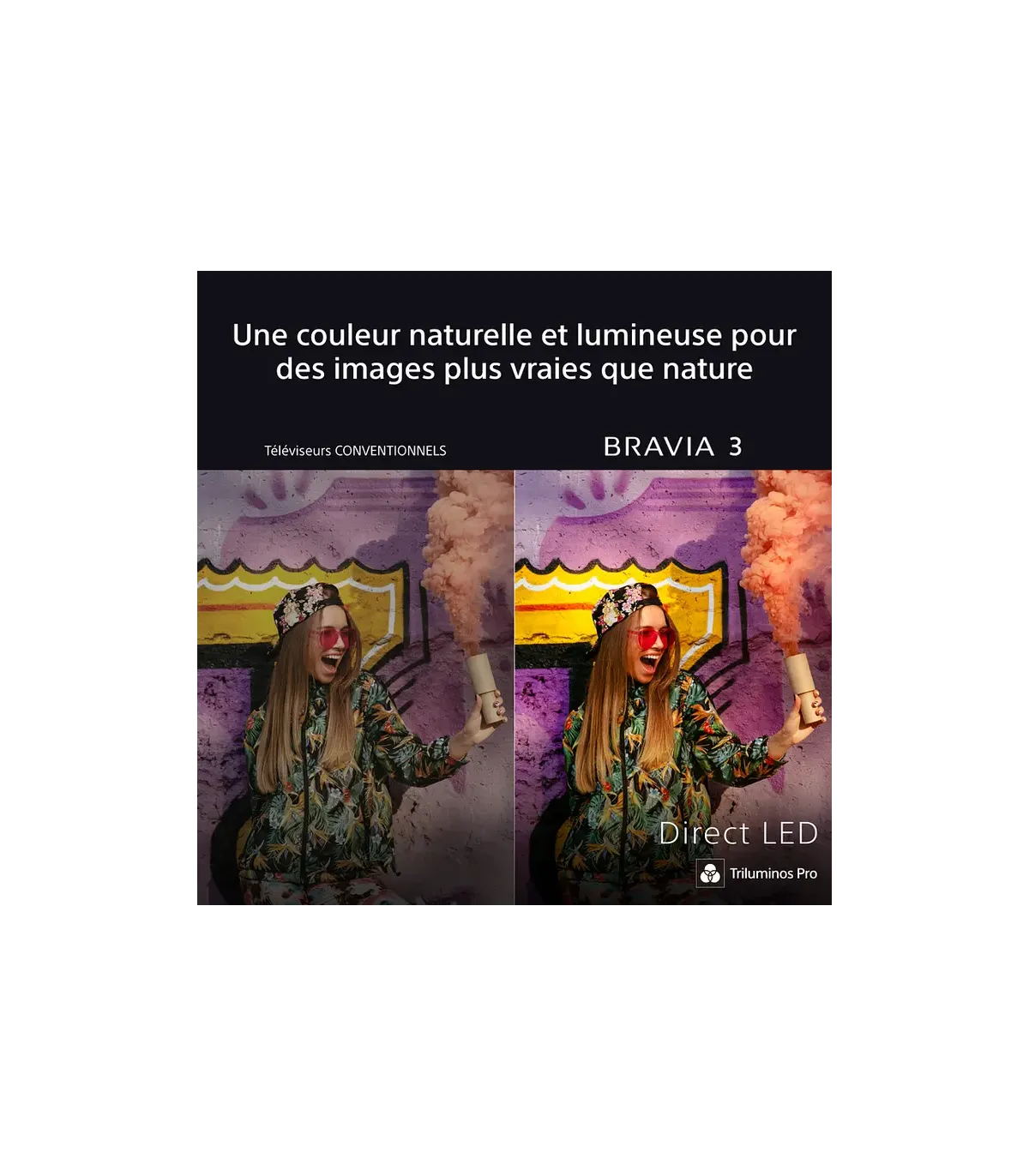 Découvrez le téléviseur Sony Bravia 3 K43S35B, un 43" conçu pour le home cinéma. Son design épuré aux bords fins sublime votre salon, tandis que la dalle 43" (108 cm) offre une image 4K UHD (3840 x 2160) d’une netteté remarquable. Profitez d’un traitement vidéo précis grâce au processeur Sony X1 et à l’upscaling 4K, avec des couleurs riches et des contrastes maîtrisés. Le son immersif est porté par des haut-parleurs équilibrés et les technologies audio Dolby Audio et DTS, pour dialoguer clairement et ressentir l’action. La plateforme Google TV vous donne accès à vos applications favorites, à la commande vocale et au Chromecast intégré. Côté connectique, bénéficiez de 4x HDMI, 2x USB, 1x Ethernet, 1x sortie optique, 1x prise casque. La connectivité sans fil inclut le Wi‑Fi double bande et le Bluetooth pour barres de son, casques et manettes. Installez, connectez, profitez : une expérience Smart TV fluide, rapide et complète.