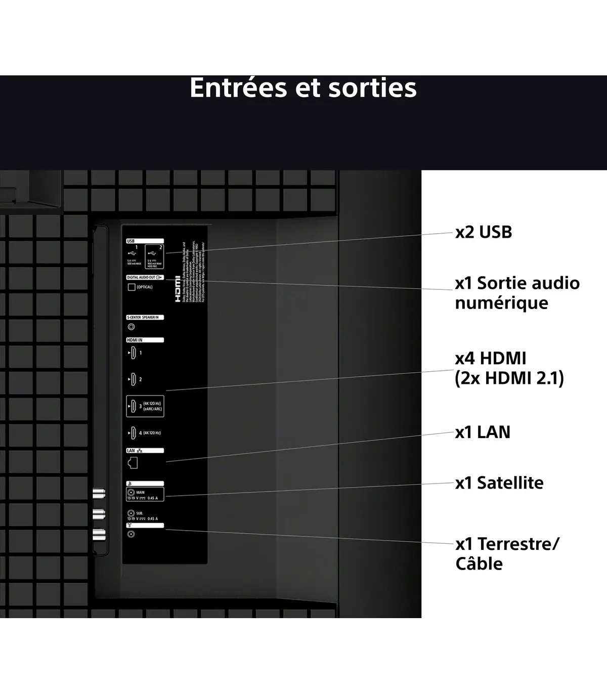 Découvrez le téléviseur Sony Bravia 5 K85XR55BP, une référence Home Cinéma au format XXL. Son design épuré cadre fin et pied élégant sublime votre salon, tandis que la dalle 85" (215 cm) offre une immersion totale en 4K UHD (3840 x 2160). La technologie Mini LED assure des noirs profonds, des pics de luminosité précis et un contraste saisissant, optimisés par le processeur XR pour une mise à l’échelle et un mouvement ultra‑fluide. Le son bénéficie d’un traitement Acoustic immersif pour des dialogues clairs et des effets enveloppants. Profitez d’une expérience connectée avec Google TV, la plateforme Smart TV intuitive avec Assistant Google, Chromecast et un large catalogue d’applications. Côté connectique: HDMI (eARC/ARC), USB, Ethernet, sortie audio optique, plus Wi‑Fi double bande et Bluetooth pour vos barres de son, manettes et casques. Ports disponibles: HDMI, USB, RJ45, optique. Parfait pour films, séries et jeux en très grande taille.