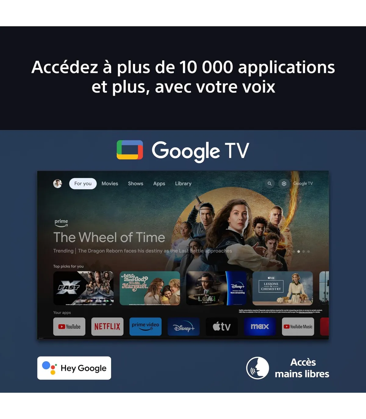 • Applications : Accès aux services de streaming via Google TV (liste non détaillée)