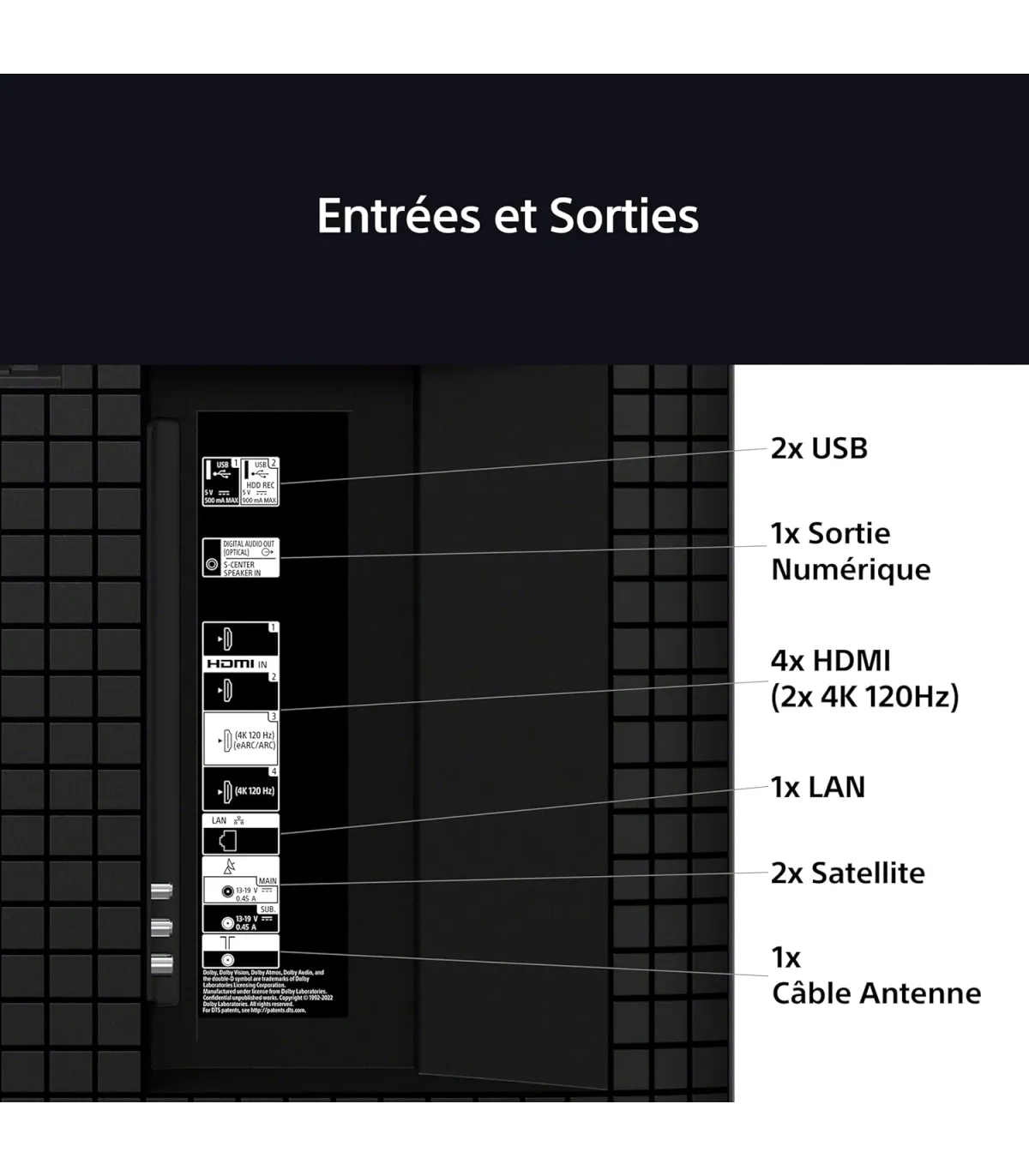 • Compatibilité HDMI 2.1 : Oui (4 ports HDMI au total, version exacte non détaillée)