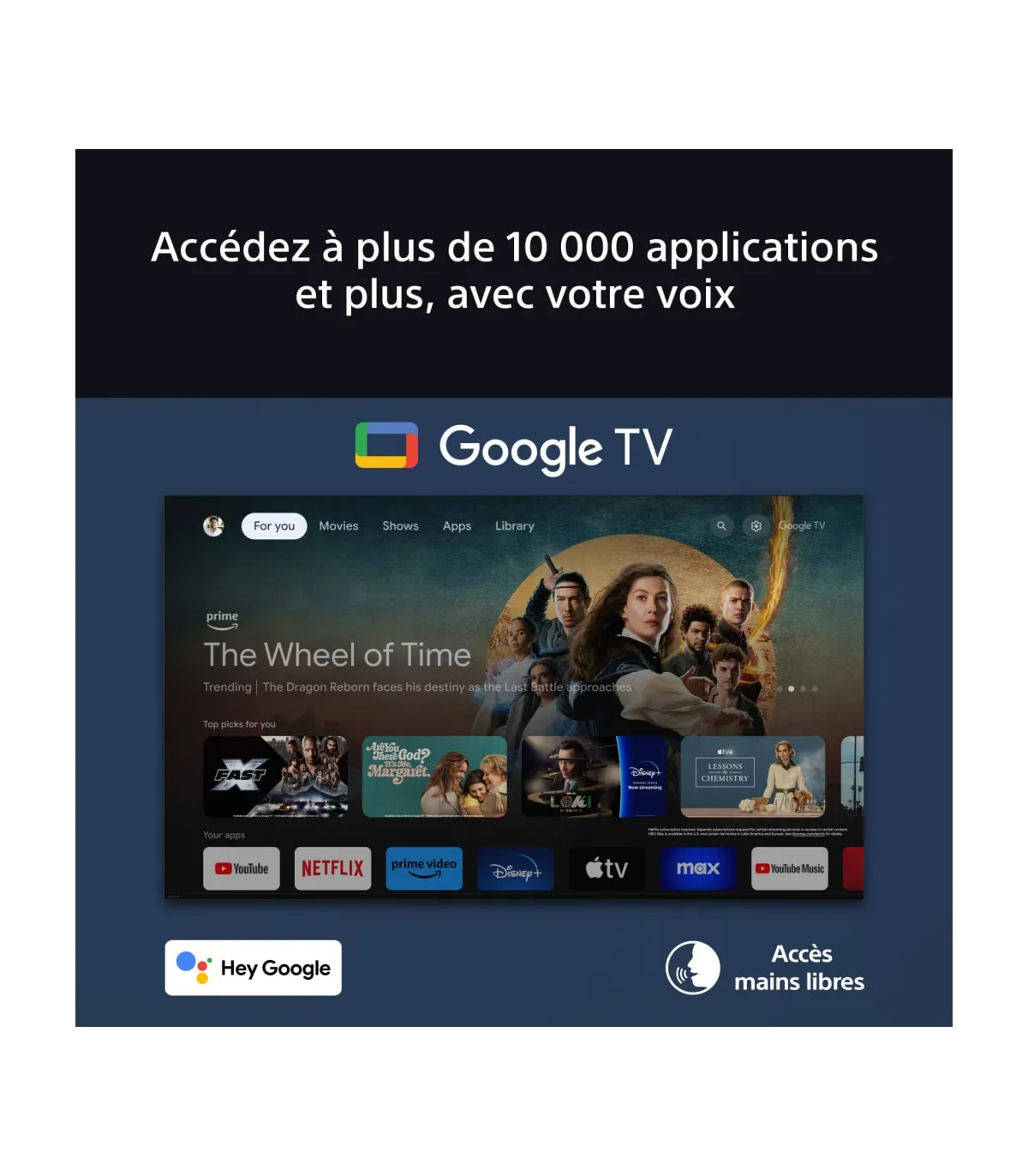La plateforme Google TV offre une interface fluide, personnalisable, riche d’applications (Netflix, Disney+, Prime Video, YouTube…). Les profils utilisateurs permettent de retrouver ses contenus rapidement, tandis que la recherche vocale s’effectue en un instant. L’appareil prend aussi en charge Apple HomeKit et Google Home, facilitant l’intégration dans les environnements connectés. L’accès à la boutique d’applications assure la pérennité et l’évolution des usages via mises à jour régulières.