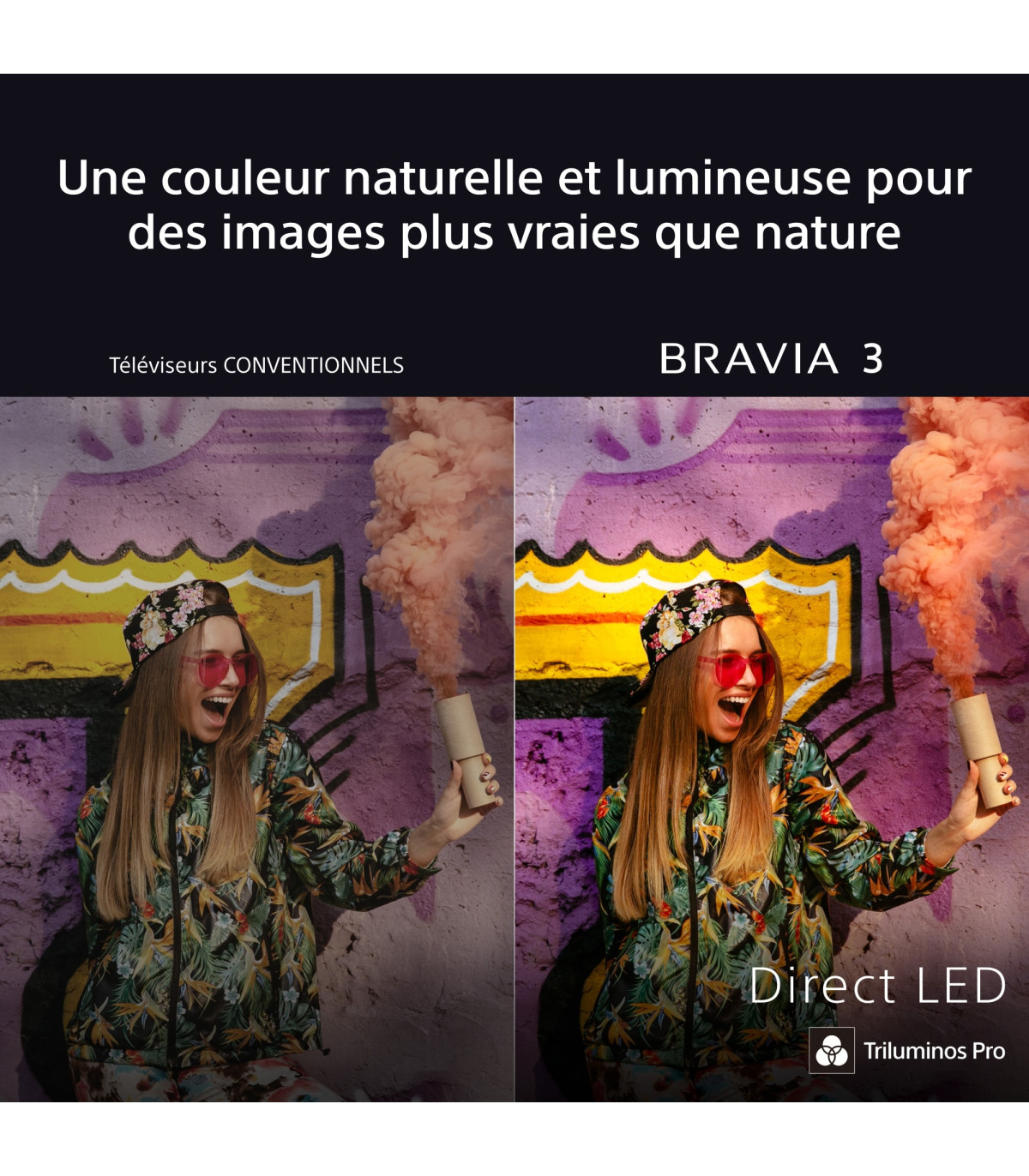 Laissez-vous subjuguer par le Sony Bravia 3 K50S35B 50" 4K UHD Direct LED, un téléviseur qui allie performance, élégance et technologie de pointe pour vous offrir une expérience visuelle incomparable.