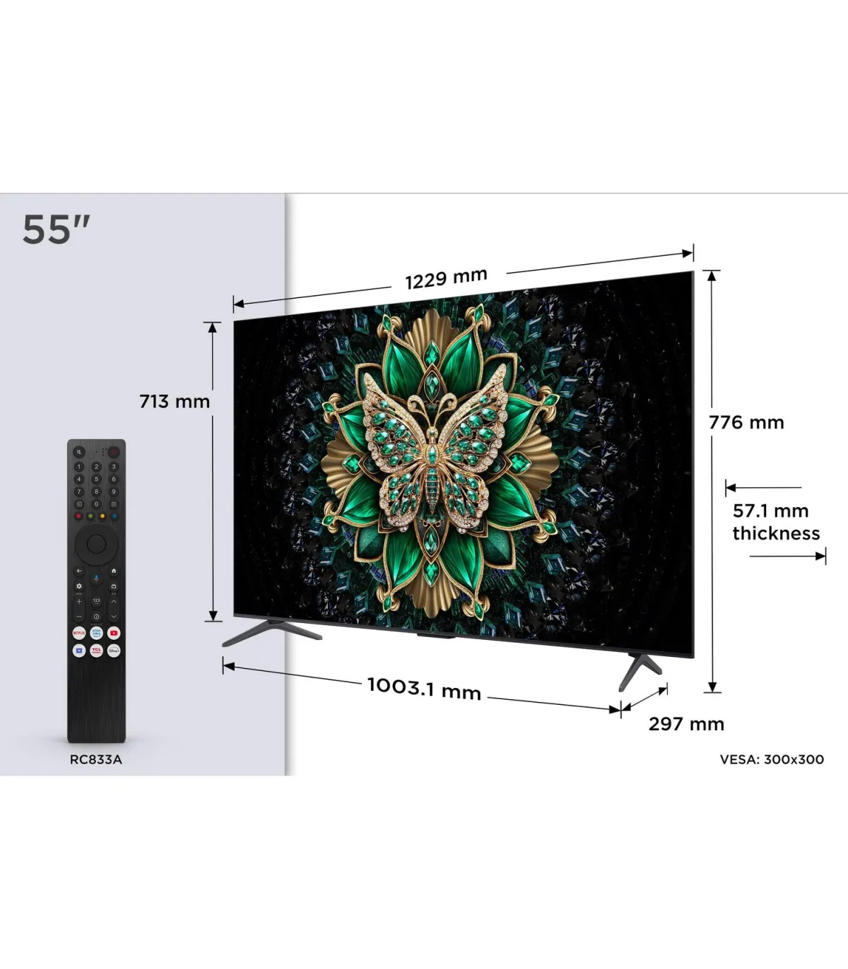Offrez-vous le spectacle ultime avec le téléviseur TCL 55C6K, 55" (139 cm), 4K UHD (3840 x 2160), doté de la technologie QD MiniLED pour des noirs profonds, un contraste précis et des couleurs éclatantes. Son design ultra-fin avec bords minimalistes sublime votre salon home cinéma. Propulsé par un processeur haute performance, il optimise upscaling, fluidité et gestion HDR. Profitez d’un son immersif grâce à des haut-parleurs intégrés optimisés pour la clarté des dialogues et l’ampleur des effets. Animé par Google TV, la plateforme Smart TV offre applications, commande vocale, Chromecast intégré et Assistant Google. Côté connectique: HDMI, USB, port Ethernet (RJ45), sortie audio numérique (optique) et prise casque. Connectivité sans fil complète avec Wi‑Fi et Bluetooth pour barre de son, casque ou manette. Le TCL 55C6K réunit contraste QD MiniLED, 4K UHD, Smart TV Google, connectique complète et connectivités Wi‑Fi/Bluetooth pour une expérience cinéma à domicile, fluide, lumineuse et spectaculaire.
