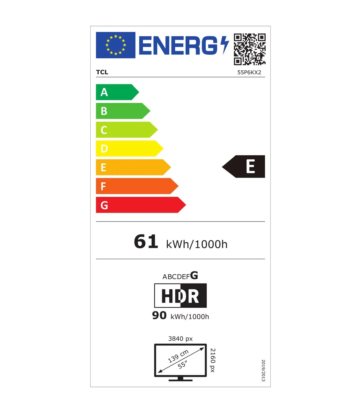 Conforme aux exigences à jour, l’appareil affiche une classe énergétique E compétitive pour un téléviseur 4K 55", avec une consommation optimisée en veille et des modes d’économie d’énergie ajustables pour réduire l’impact au quotidien.