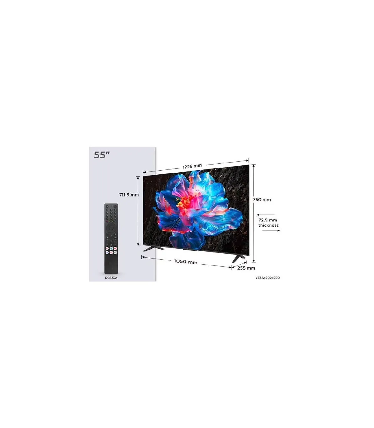 Découvrez le TCL 55P61K, un téléviseur 55" 4K UHD LED pensé pour le home cinéma. Son design fin et sans bords sublime votre salon, tandis que la dalle 55 pouces (139 cm) en 3840 x 2160 offre une image nette et lumineuse avec un excellent contraste. Le processeur performant optimise l’upscaling 4K et la fluidité des mouvements pour des films et séries immersifs. Le son clair et équilibré met en valeur dialogues et effets, idéal pour vos soirées cinéma. Le téléviseur intègre Google TV, offrant une interface personnalisée, la recherche vocale Google Assistant, Chromecast intégré et un vaste catalogue d’applications. Côté connectique, profitez de HDMI, USB, sortie optique, port Ethernet et prise antenne pour tous vos appareils. La connectivité Wi‑Fi et Bluetooth assure un streaming fluide et l’appairage facile de barres de son, manettes et casques. Le TCL 55P61K combine style, performance et simplicité pour une expérience 4K complète.