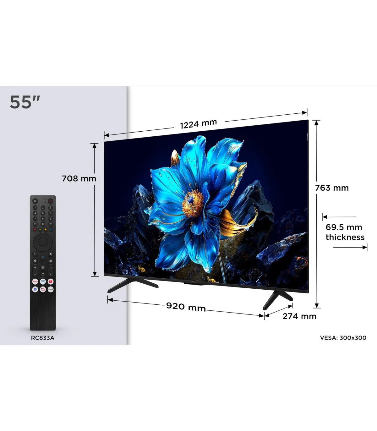 Découvrez le TCL 55P7K, un téléviseur QLED 55" 4K conçu pour sublimer vos contenus. Son écran Ultra HD (3840 x 2160) avec QLED offre des couleurs riches, une luminosité 450 nits et de larges angles de vision 178°/178°. Profitez d’un rendu HDR précis grâce aux formats HDR10+ et HLG, pilotés par l’AiPQ Processor pour optimiser netteté, contraste et couleurs en temps réel. La fluidité est assurée par le 60 Hz et la technologie MEMC. Côté audio, le système 2.0 20 W avec Dolby Audio et Dolby Digital Plus garantit un son clair et immersif, avec contrôle automatique du volume. Sous Google TV, accédez à vos apps favorites via Google Play, avec Chromecast intégré et Google Assistant. Connectique complète: 3 x HDMI, 1 x USB 3.0, 1 x USB 2.0, RJ‑45, sortie audio, Wi‑Fi et Bluetooth. Enregistrement PVR, DLNA, tuners DVB‑T/T2/C/S/S2.
