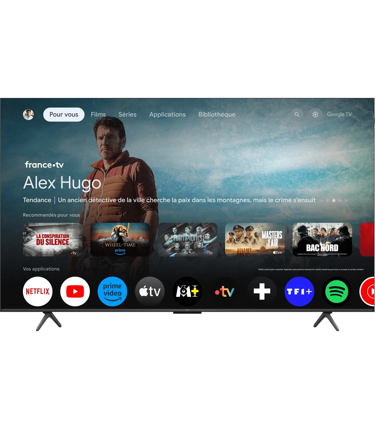 Découvrez le téléviseur TCL 65P8K, un 65" pensé pour le home cinéma. Son design épuré à bords fins s’intègre élégamment à votre salon. Profitez d’une image saisissante en 65" (164 cm) avec une résolution 4K UHD (3840 x 2160), couleurs riches et contrastes précis pour des séances immersives. Le processeur performant optimise netteté, fluidité et upscaling, tandis que le son équilibré offre une scène audio enveloppante. La Smart TV tourne sous Google TV pour un accès fluide aux applications, à la commande vocale et au streaming. Côté connectique, bénéficiez de HDMI, USB, sortie audio, entrée antenne et port Ethernet. La connexion sans fil est assurée par le Wi‑Fi et le Bluetooth pour relier barre de son, manettes ou écouteurs. Avec ses atouts image, son et simplicité d’usage, le TCL 65P8K transforme vos films, séries et jeux en une expérience spectaculaire. Optez pour une TV polyvalente, rapide et intuitive, taillée pour le divertissement.