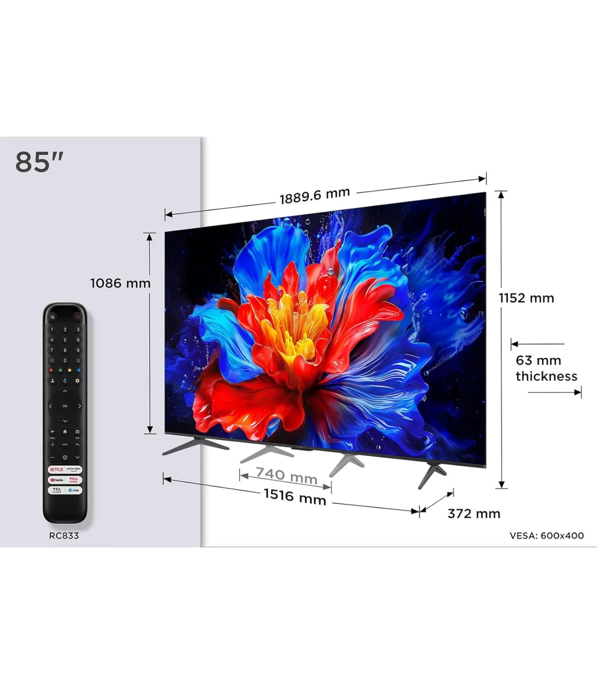 Plongez au cœur du divertissement avec le téléviseur TCL 85P8K, écran 85" (215 cm) au design bord à bord élégant. Sa dalle 4K UHD et technologie QLED délivrent des couleurs éclatantes, un contraste précis et une netteté saisissante, idéale pour films, séries et sport. Propulsé par un processeur puissant pour une mise à l’échelle fluide, il offre une expérience réactive sous Google TV, la plateforme Smart TV intuitive avec recommandations personnalisées. Profitez d’un son immersif grâce aux haut-parleurs optimisés et au traitement audio avancé. Connectivité complète avec HDMI, USB, sortie optique, entrée antenne, Ethernet (RJ45) et CI+ pour vos appareils et consoles. Connexions sans fil fiables via Wi‑Fi et Bluetooth pour casques, barres de son et manettes. La résolution 3840 x 2160 sublime chaque détail, tandis que l’interface fluide facilite l’accès aux applications de streaming. Le TCL 85P8K, la pièce maîtresse de votre home cinéma, allie performance, élégance et simplicité d’usage.