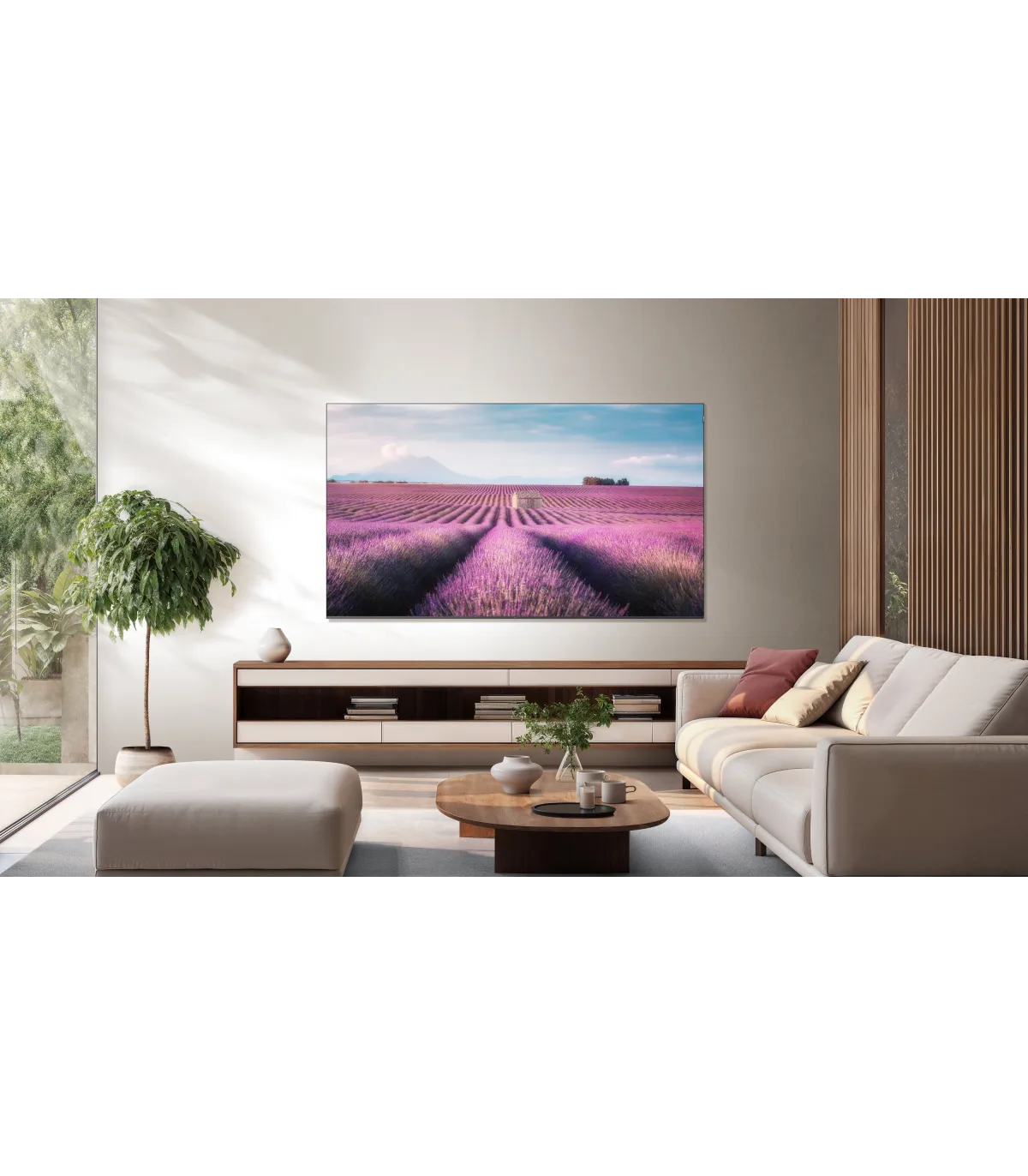 Avec son cadre fin en métal et son pied élégant, le téléviseur 85 pouces (215 cm) s’intègre parfaitement aux intérieurs contemporains tout en affirmant une présence cinéma. Sa dalle QLED maximise la surface d’image et limite les reflets, pour une immersion totale sur grand écran. Compatible fixation VESA 600 x 400, il peut être installé au mur pour une mise en scène sobre et premium.