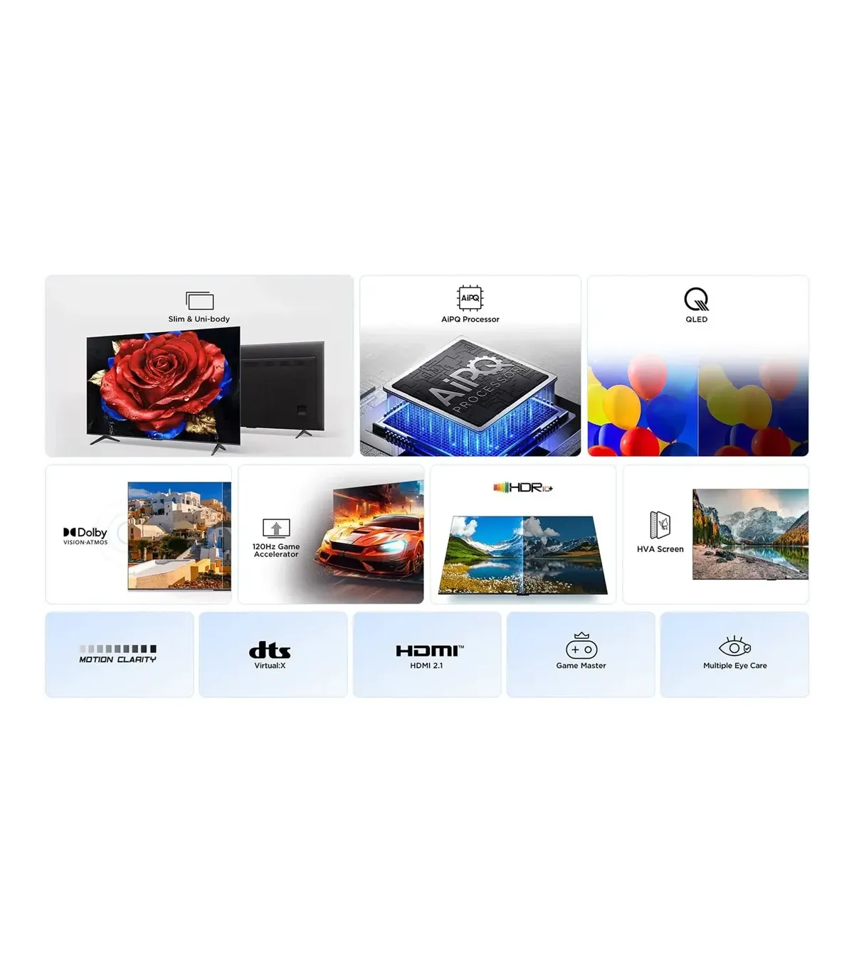 Découvrez le TCL T69C 43T69C, un téléviseur 4K Ultra HD de 109,2 cm (43") qui sublime vos films, séries et jeux. Son panneau LCD à rétroéclairage LED direct et une luminosité de 350 cd/m² délivrent des images nettes et contrastées, tandis que le support des formats HDR10+, Dolby Vision et HLG renforce chaque détail. Porté par le processeur TCL AiPQ, l’upscaling 4K optimise toutes vos sources. Profitez d’une expérience Smart TV fluide avec Google TV, Chromecast intégré, navigateur web et un vaste choix d’applications (YouTube, Netflix, Prime Video). Connectivité complète: 3x HDMI 2.1 (eARC/ARC), 2x USB 3.2, Ethernet, Wi‑Fi 5, Bluetooth 5.4, CI+ 1.4, sortie optique. Le son 2.0 de 20 W est compatible Dolby Atmos et DTS Virtual:X avec égaliseur et niveleur de volume. Design sans châssis, pied stable, VESA 200x100. Idéal pour le gaming: Mode Jeu, Game Bar et Game Master. Commande vocale, Alexa/Google Assistant, DLNA, Miracast et TCL Home pour un écosystème connecté. Caractéristiques clés: • Écran 43" 4K UHD, HDR10+/Dolby Vision, 350 cd/m² • Smart TV Google TV, Chromecast intégré, Wi‑Fi 5/Bluetooth 5.4 • 3x HDMI 2.1 avec eARC, 2x USB 3.2, Ethernet, CI+ 1.4 • Audio 2.0 20 W, Dolby Atmos, DTS Virtual:X • Mode Jeu, Game Bar, upscaling 4K (TCL AiPQ) • Design sans châssis, VESA 200x100