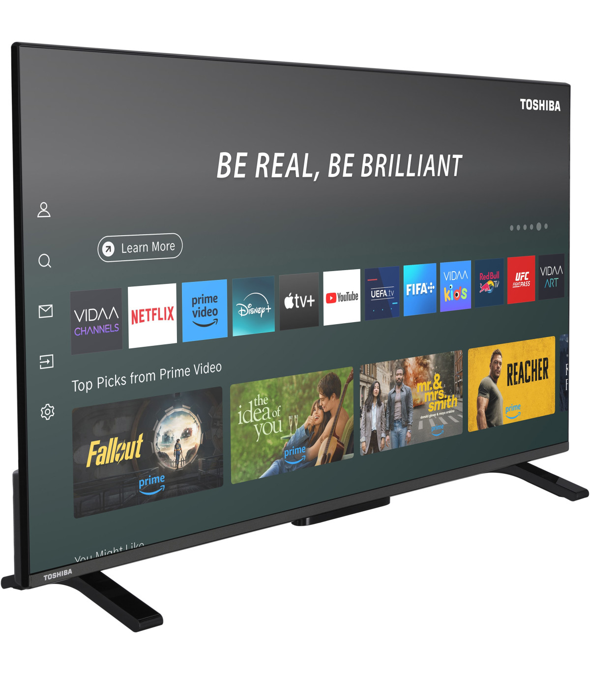 Enfin, ce téléviseur Toshiba n'est pas seulement performant mais aussi très élégant. Son design épuré avec cadre mince s'intègre parfaitement dans tout type d'intérieur moderne. Le pied central offre non seulement une stabilité parfaite mais contribue également au look sophistiqué du modèle.
