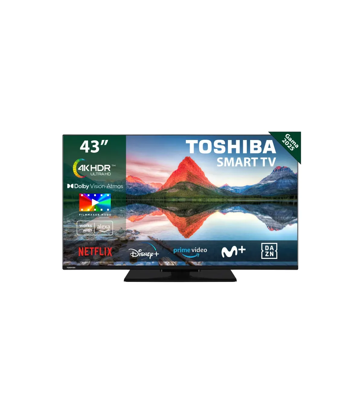 Plongez au cœur de l’image avec le Toshiba 43QV3463DG, un téléviseur QLED 43" 4K UHD qui allie couleurs éclatantes et contraste profond pour une précision visuelle exceptionnelle. Grâce à Dolby Vision HDR et HDR10, chaque scène est optimisée image par image pour une luminosité et un réalisme renforcés, tandis que TRU Resolution et UHD Upscaling subliment vos contenus non-4K. Côté son, Dolby Audio et DTS offrent une scène sonore immersive, avec dialogues clairs et effets enveloppants, sans enceintes additionnelles. Profitez d’une expérience connectée fluide avec VIDAA Smart TV, Wi‑Fi, Bluetooth, Assistant Google et Amazon Alexa, ainsi que les applications populaires en 4K (Netflix, YouTube, Disney+, Prime Video…). La connectique complète inclut 3x HDMI, 2x USB, LAN, CI+, et la fonction PVR/DVR. Pratique et polyvalent avec tuner DVB-T/T2/C/S/S2, HBBTV 2.0.2, Screen Mirroring, mode Hôtel et VESA 100x100.