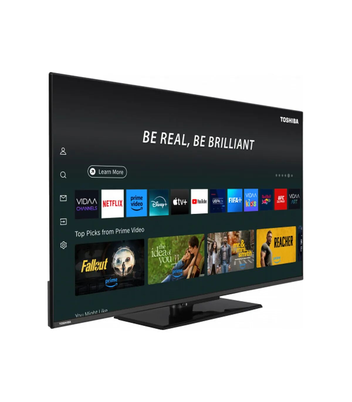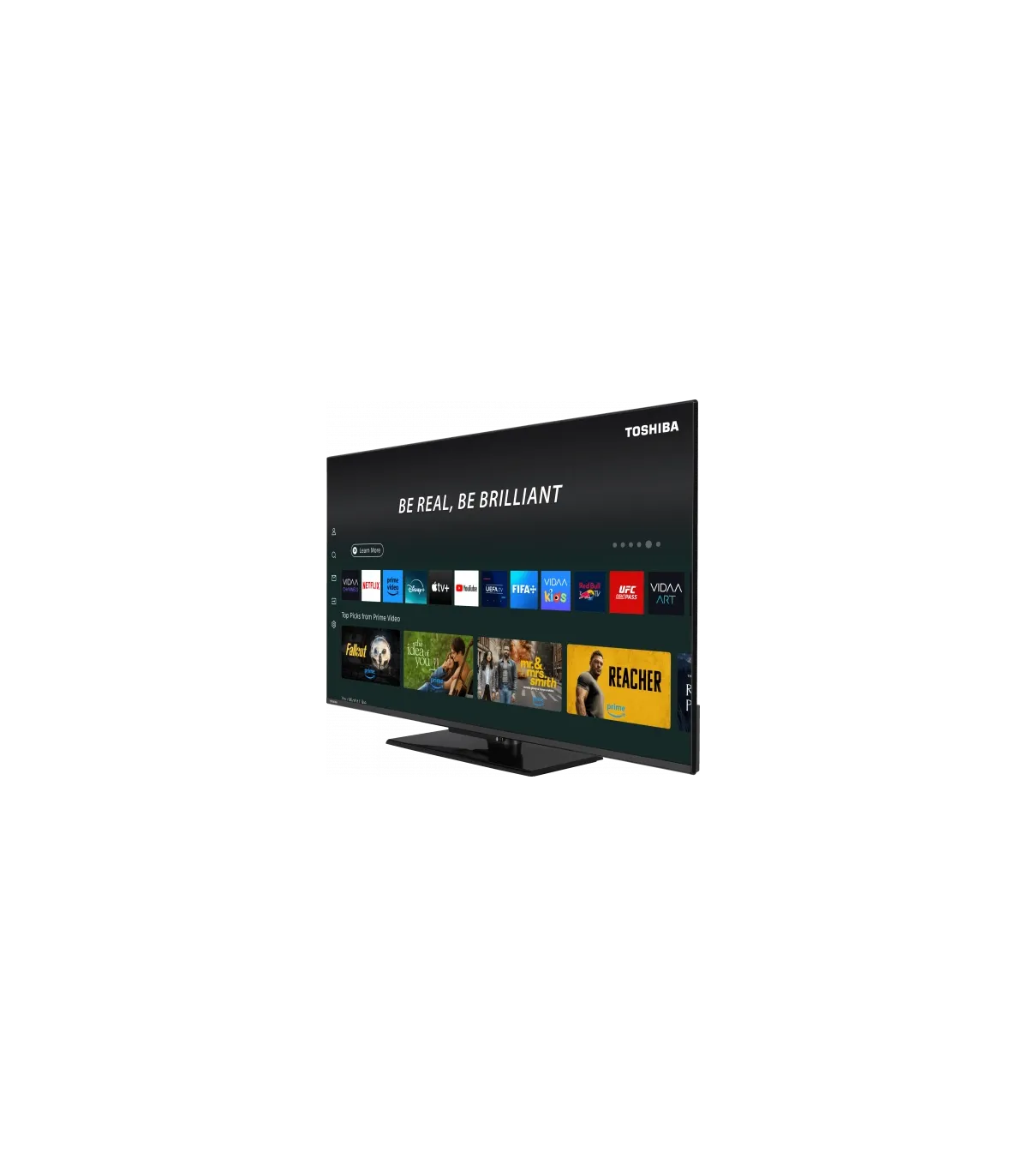 Plongez au cœur du divertissement avec le téléviseur Toshiba 50QV3F63DG. Son design fin et élégant met en valeur une dalle 50" (127 cm) au format 4K UHD (3840 x 2160), sublimée par la technologie QLED pour des couleurs riches et des contrastes profonds. Propulsé par un processeur puissant optimisant l’upscaling et la fluidité, il offre une image précise et naturelle. Le son immersif, compatible Dolby et optimisé par des haut-parleurs de qualité, renforce l’expérience home cinéma. Côté smart, profitez de Fire TV avec l’OS Vidaa U pour un accès rapide à vos applications préférées, la recherche vocale et une interface fluide. Connectivité complète avec Wi‑Fi, Bluetooth, HDMI, USB, entrée antenne, sortie audio, Ethernet, et plus encore, pour brancher consoles, barres de son et box. La plateforme Smart TV assure un écosystème riche et personnalisable. Il combine design, performance d’image, audio précis et connectique moderne pour un salon résolument cinéma.