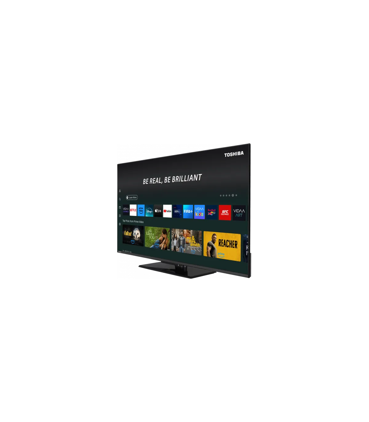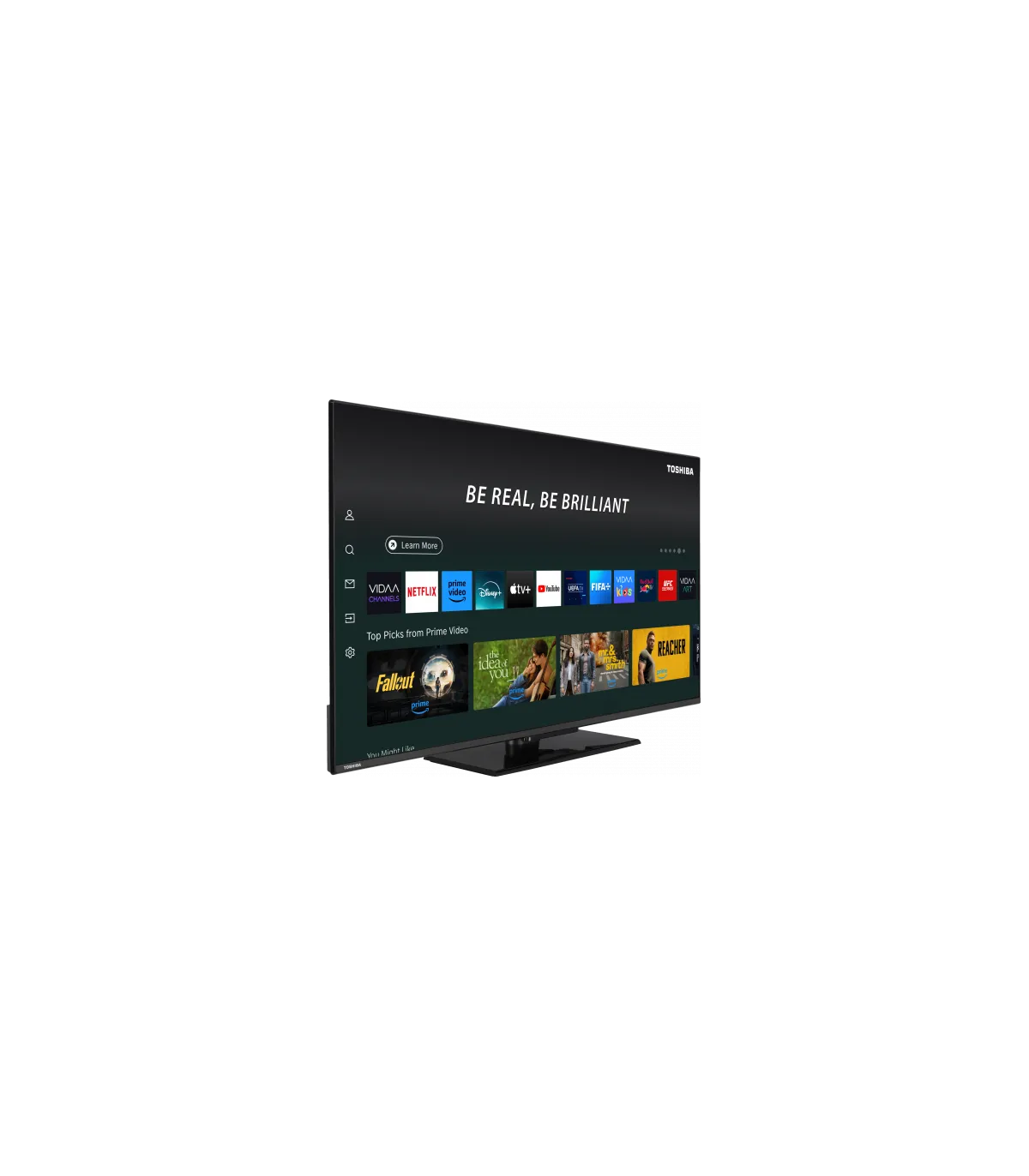 Découvrez le Toshiba 50QV3F63DG, un téléviseur 50" (127 cm) au design élégant aux bordures fines, parfait pour votre salon home cinéma. Profitez d’une image spectaculaire grâce à la dalle 4K UHD QLED (3840 x 2160), couleurs vives et contraste profond, portée par un processeur puissant pour un upscaling précis et des mouvements fluides. Le son immersif bénéficie d’enceintes optimisées et de traitements audio avancés pour une expérience cinéma à domicile. La plateforme Smart TV Vidaa offre une navigation rapide, des applications incontournables et un contrôle vocal pratique. Côté connectique, profitez de HDMI, USB, sortie audio, entrée antenne et port Ethernet pour tous vos équipements. La connectivité sans fil est complète avec Wi‑Fi stable et Bluetooth pour barres de son, écouteurs et manettes. Avec son design soigné, sa dalle QLED, sa résolution 4K UHD, son processeur performant, sa Smart TV Fire TV, ses ports HDMI/USB/Ethernet, son Wi‑Fi et son Bluetooth, ce modèle est taillé pour le divertissement ultime.