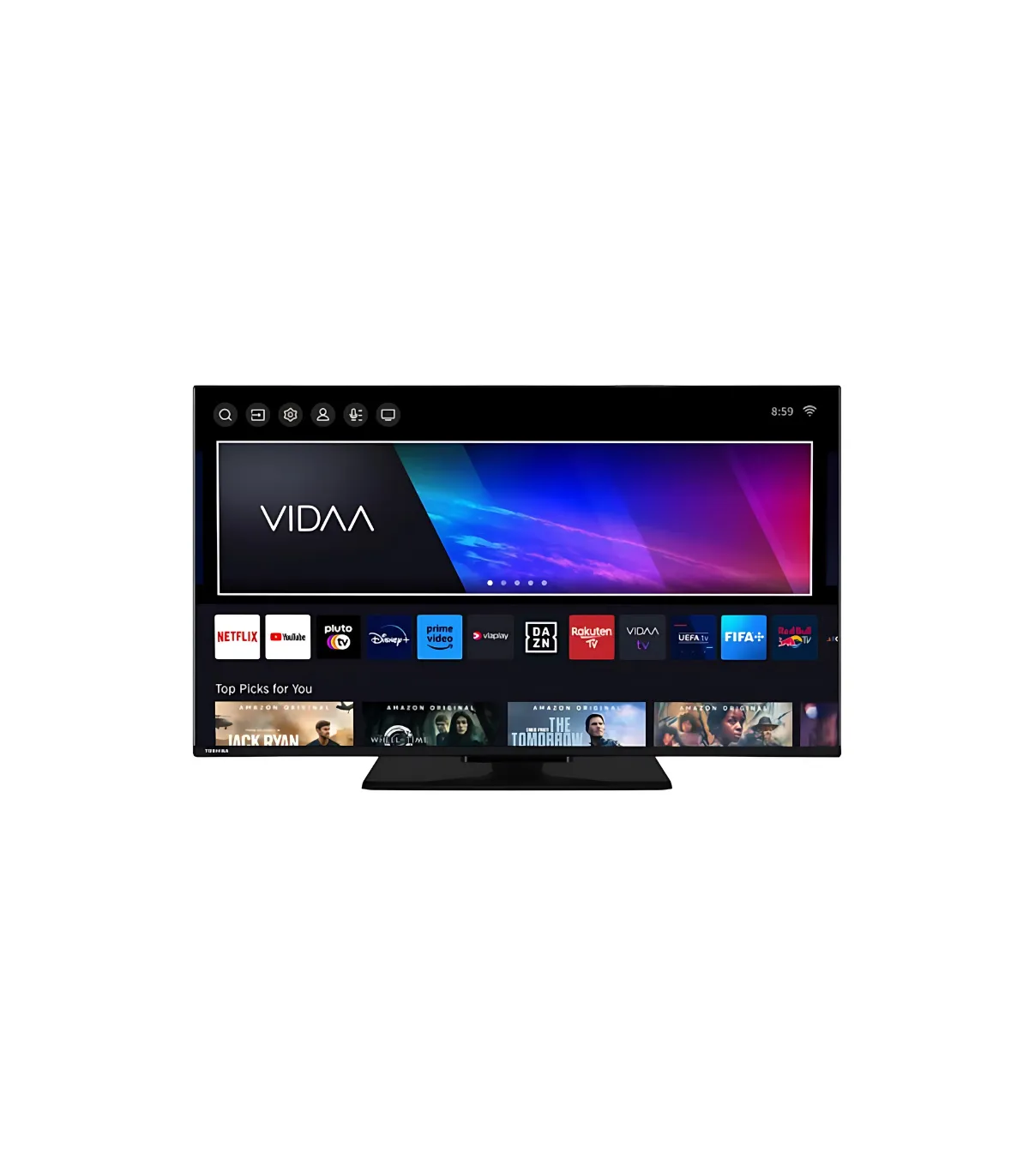 Ce modèle intègre la plateforme VIDAA, offrant une interface Smart TV simple et rapide à utiliser. L’utilisateur peut accéder directement à des applications populaires comme Netflix, YouTube et Prime Video. Le téléviseur dispose d’un navigateur web intégré et supporte la fonction “Screen Mirroring” pour projeter l’écran d’un smartphone ou d’une tablette. Il est également “Works With Alexa”, ce qui permet de contrôler certaines fonctions via un appareil compatible.