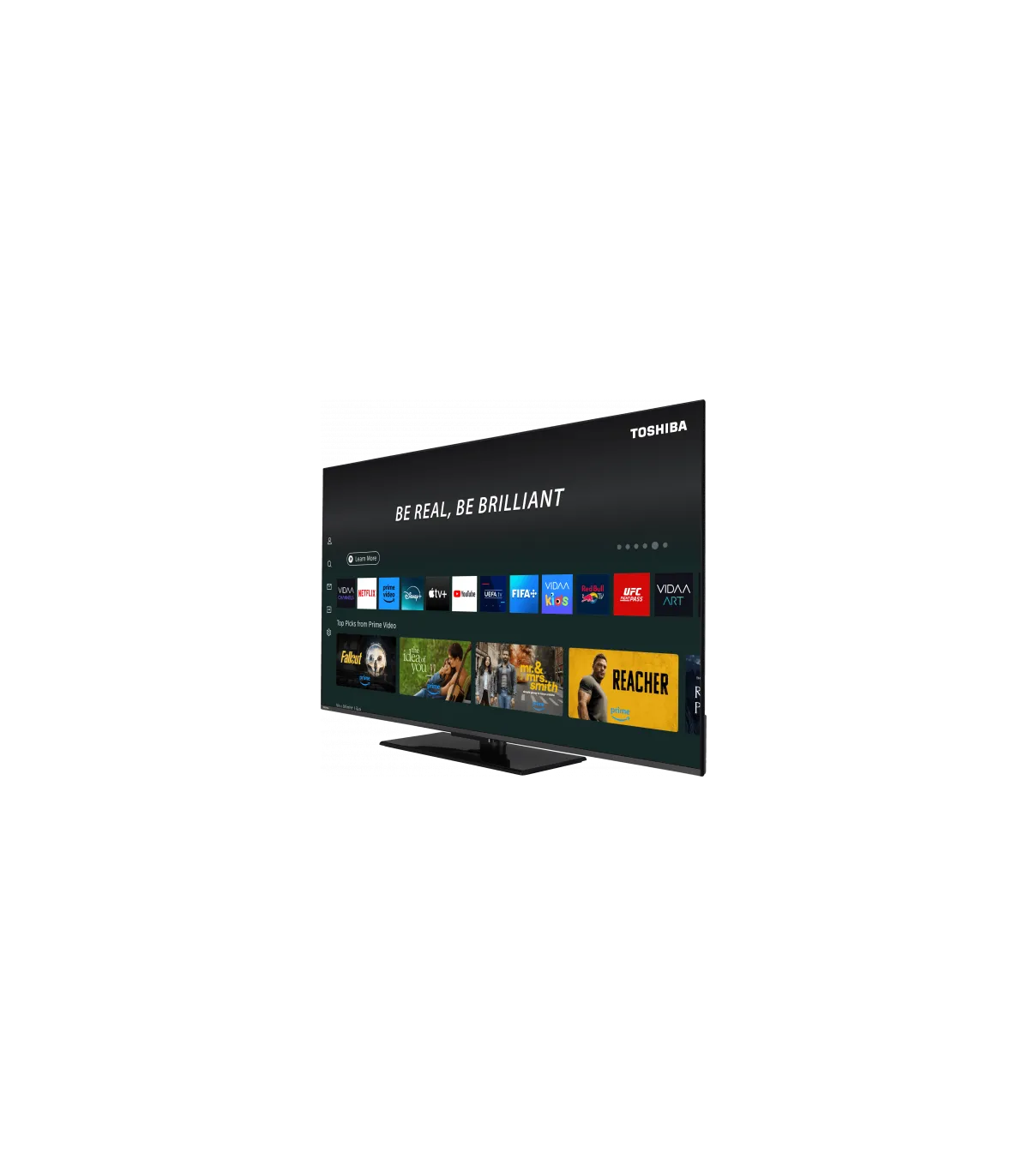 Plongez au cœur du spectacle avec le téléviseur Toshiba 65QV3F63DG, un 65" (164 cm) au design cadre fin et pieds élégants, parfait pour le home cinéma. Son écran 4K UHD (3840 x 2160) à technologie QLED délivre des couleurs riches, un contraste profond et une luminosité maîtrisée pour une image saisissante. Propulsé par un processeur performant optimisant mise à l’échelle 4K, fluidité et réduction de bruit, il offre une expérience immersive. Le son est renforcé par des haut-parleurs stéréo avec traitements audio pour des dialogues clairs et des effets enveloppants. La plateforme Vidaa assure un accès fluide aux applications, à la commande vocale et au Chromecast intégré. Côté connectique: HDMI, USB, sortie audio, entrée antenne et port Ethernet. Connectivités sans fil: Wi‑Fi rapide et Bluetooth pour casques, barres de son et manettes. Profitez d’une Smart TV complète, prête pour films, séries et gaming en 4K avec une ergonomie exemplaire.