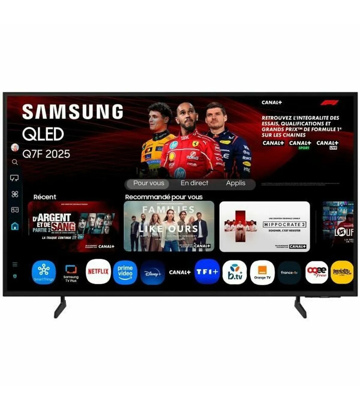 Découvrez le Samsung TQ50Q7F, un téléviseur 50" (127 cm) pensé pour le home cinéma. Son design élégant aux bords fins sublime votre salon, tandis que la dalle 4K UHD (3840 x 2160) QLED offre des couleurs éclatantes et des noirs profonds pour une immersion totale. Propulsé par un processeur puissant optimisant l’upscaling et le contraste scène par scène, il délivre une image fluide et détaillée. Côté audio, profitez d’un son clair et ample, idéal pour films, séries et sport. L’expérience connectée est intuitive grâce au système d’exploitation Smart TV Tizen: accès rapide aux applications, contrôle simple et navigation rapide. La connectique complète inclut HDMI, USB, sortie audio, port réseau Ethernet et antenne, pour tous vos équipements. La connexion sans fil est assurée par le Wi‑Fi et le Bluetooth, pour streamer, jumeler une barre de son ou des écouteurs en un instant. Le Samsung TQ50Q7F réunit QLED, 4K, Tizen, Wi‑Fi et Bluetooth pour une expérience cinéma à domicile, nette, colorée et ultraconnectée.