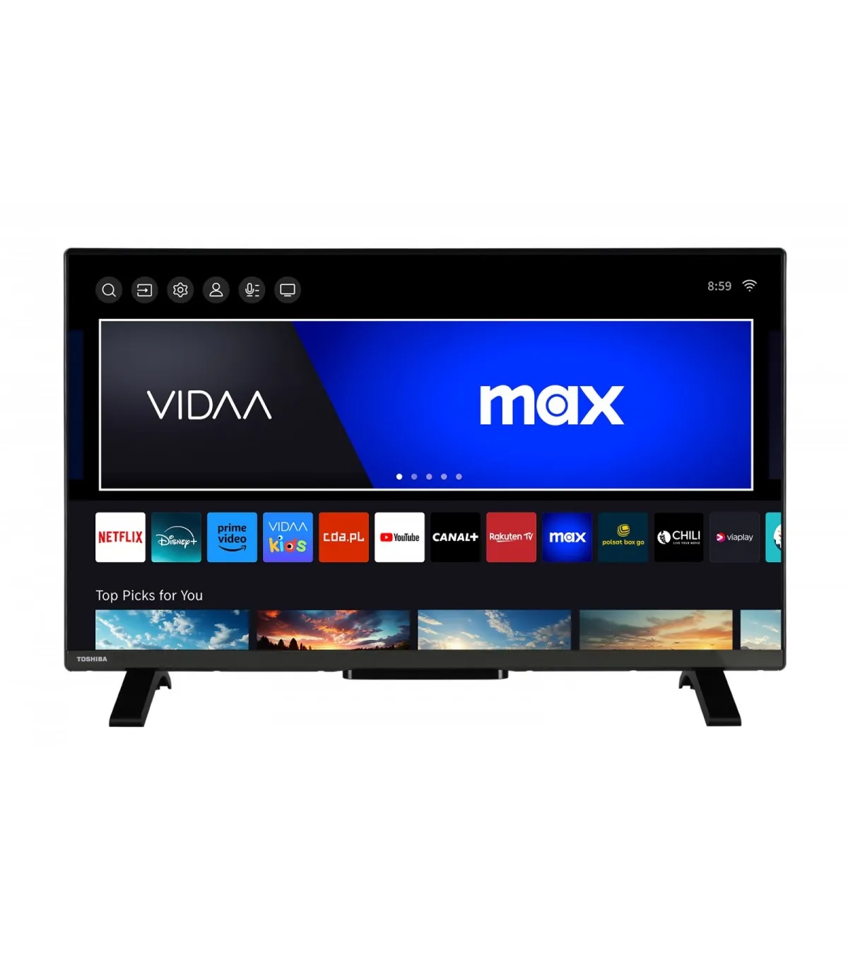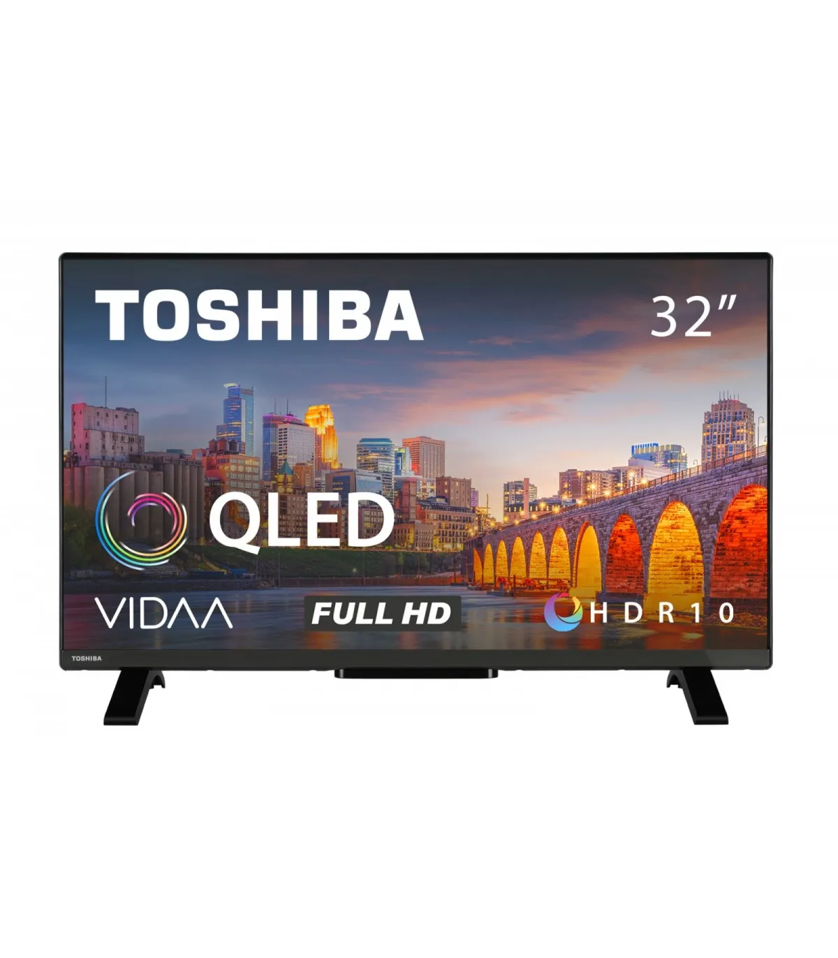 Découvrez le Toshiba 32QV2F63DG, un téléviseur 32" Full HD QLED qui allie design épuré et performance. Son cadre fin finition noir mat s’intègre harmonieusement à tous les intérieurs, tandis que l’écran QLED 32" (80 cm) offre des couleurs riches et une luminosité de 300 nits. Profitez d’une image nette en Full HD 1920 × 1080 avec prise en charge HDR10 et HLG, mappage de tonalité statique et interpolation MEMC pour des mouvements plus fluides. Côté audio, les 2×10 W avec Dolby Audio et DTS Virtual:X délivrent un son immersif. Propulsé par un processeur Quad‑Core 64‑bit, le téléviseur assure upscaling FHD et réduction de bruit avancée. Smart TV sous VIDAA (selon région) avec Google Assistant, compatibilité Alexa, Chromecast intégré et AirPlay 2. Jeux optimisés avec ALLM pour une faible latence. Connectique complète: 3× HDMI (dont 1 ARC), 2× USB, optique, jack 3,5 mm, AV, Ethernet, Wi‑Fi 5 et Bluetooth 5.0. Installation facile avec VESA 100 × 100 mm. Dimensions sans pied: 72,0 × 42,0 × 7,5 cm; avec pied: 72,0 × 46,5 × 18,0 cm. Poids: 5,2/5,5 kg.