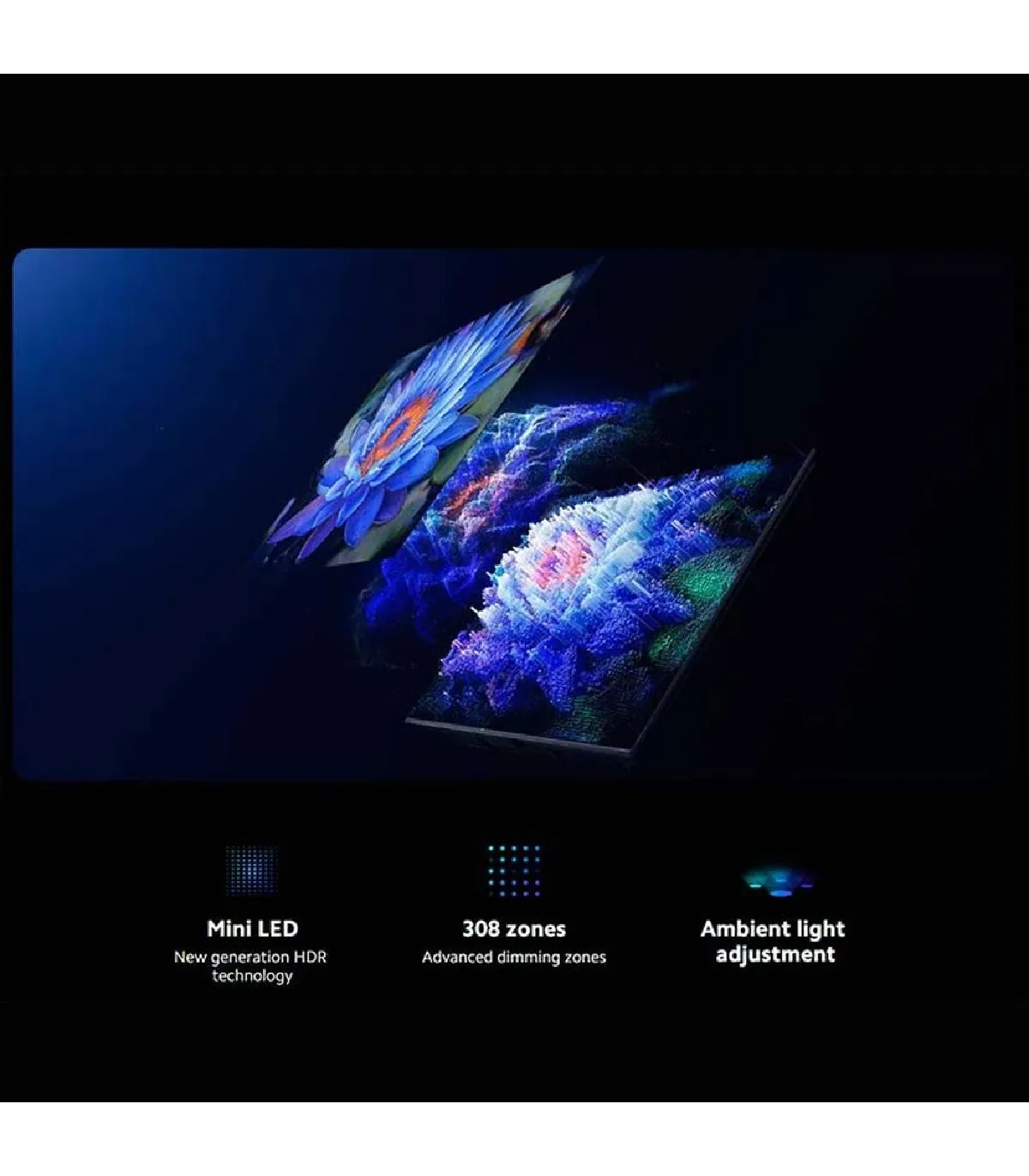 La technologie QD‑Mini LED combine un rétroéclairage à zones avec des nanocristaux Quantum Dot pour une luminosité élevée, un contraste profond et des couleurs d’une grande pureté. La définition 4K UHD (3840 x 2160) révèle un niveau de détail fin, tandis que la gradation locale multiplie les nuances dans les scènes sombres. La grande couverture colorimétrique et la précision des tons de peau assurent un rendu naturel et impactant, parfait pour les films HDR et les séries premium.